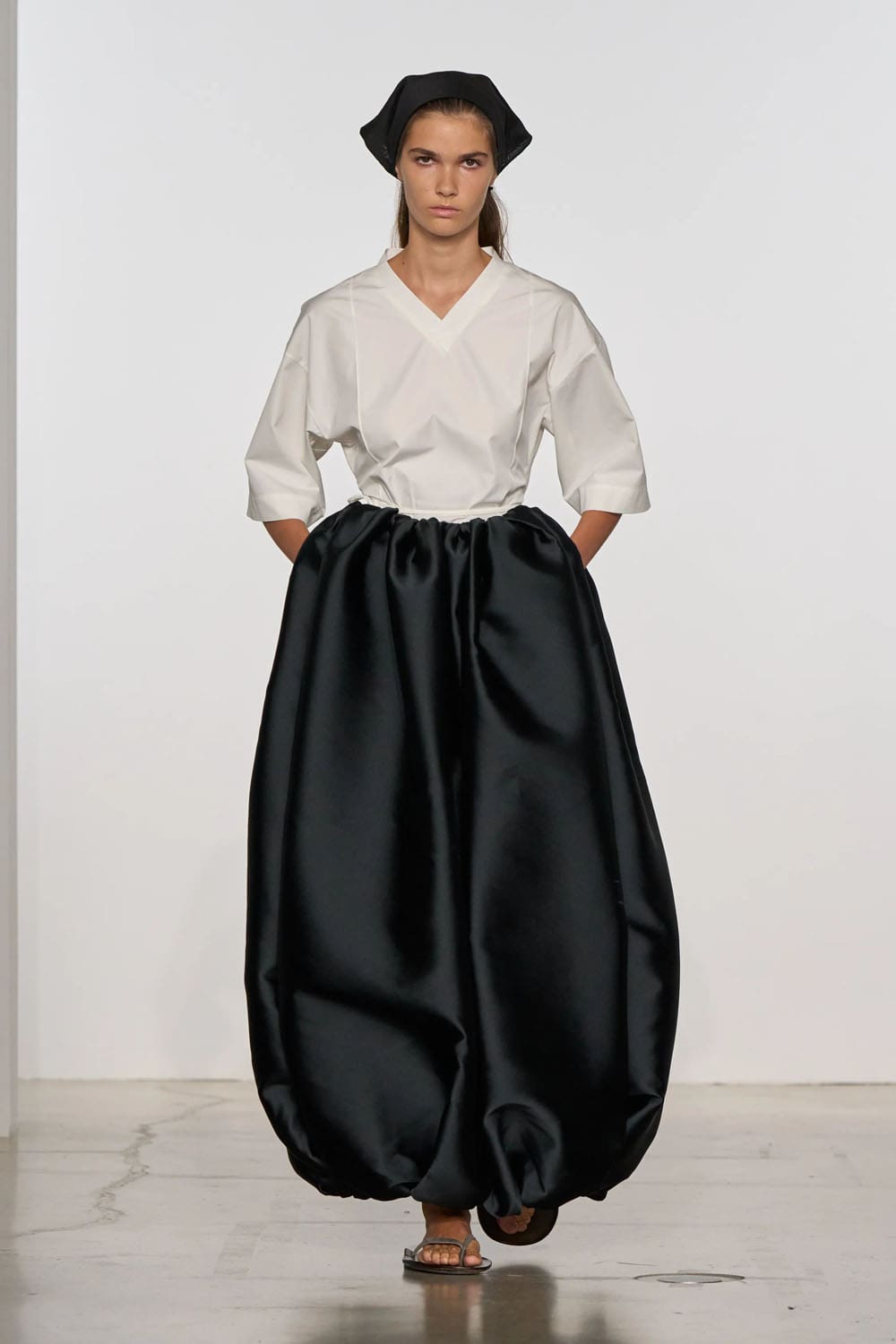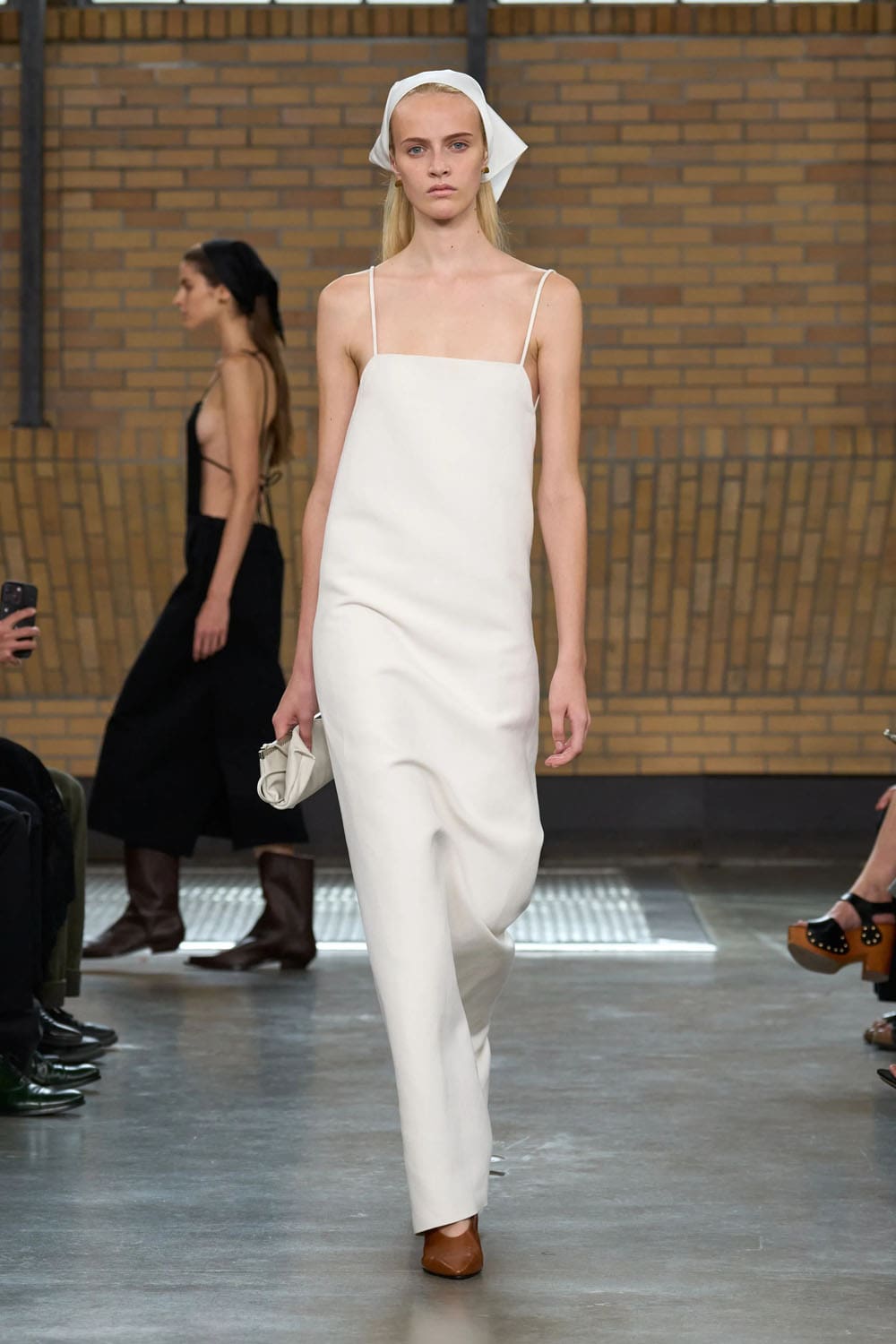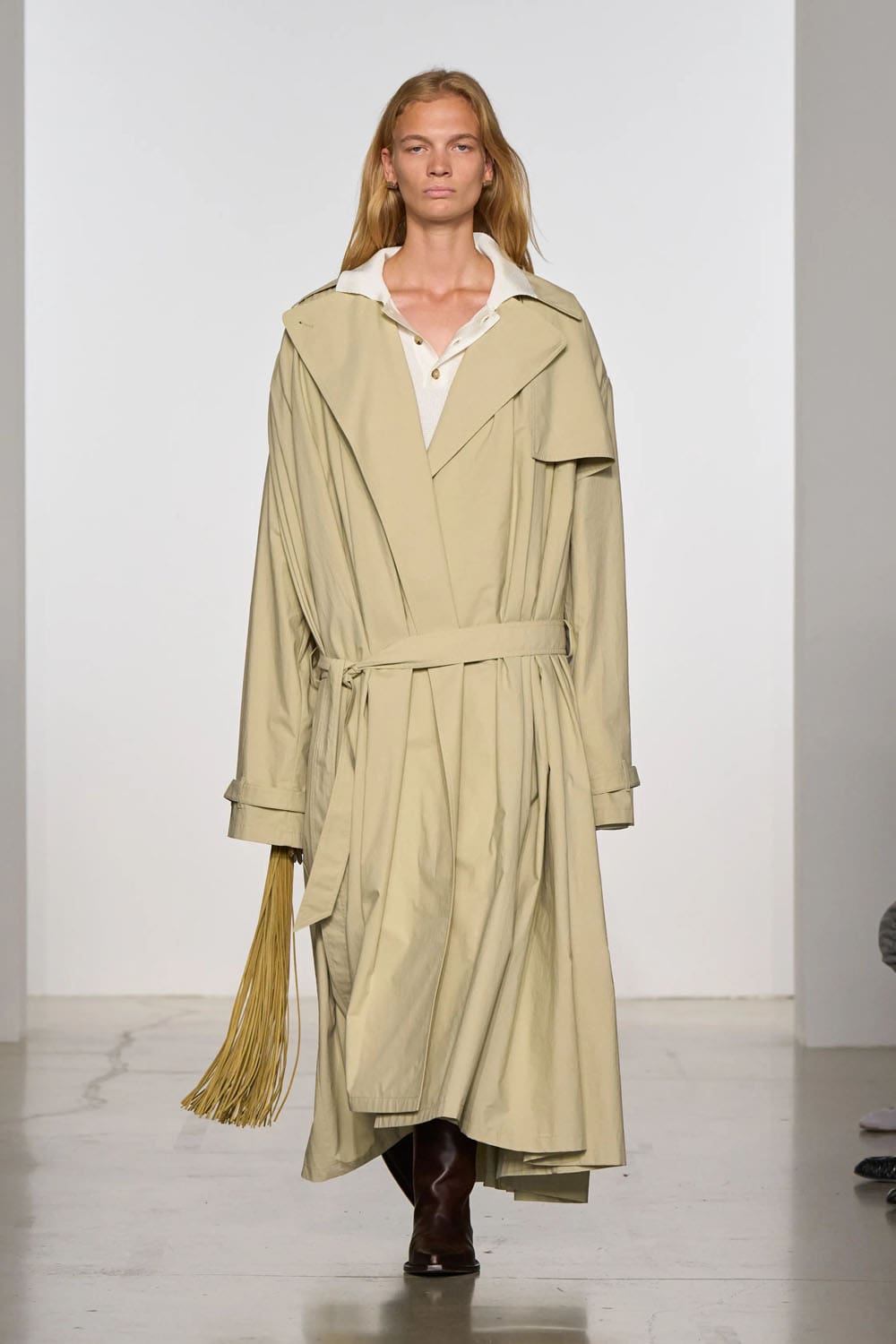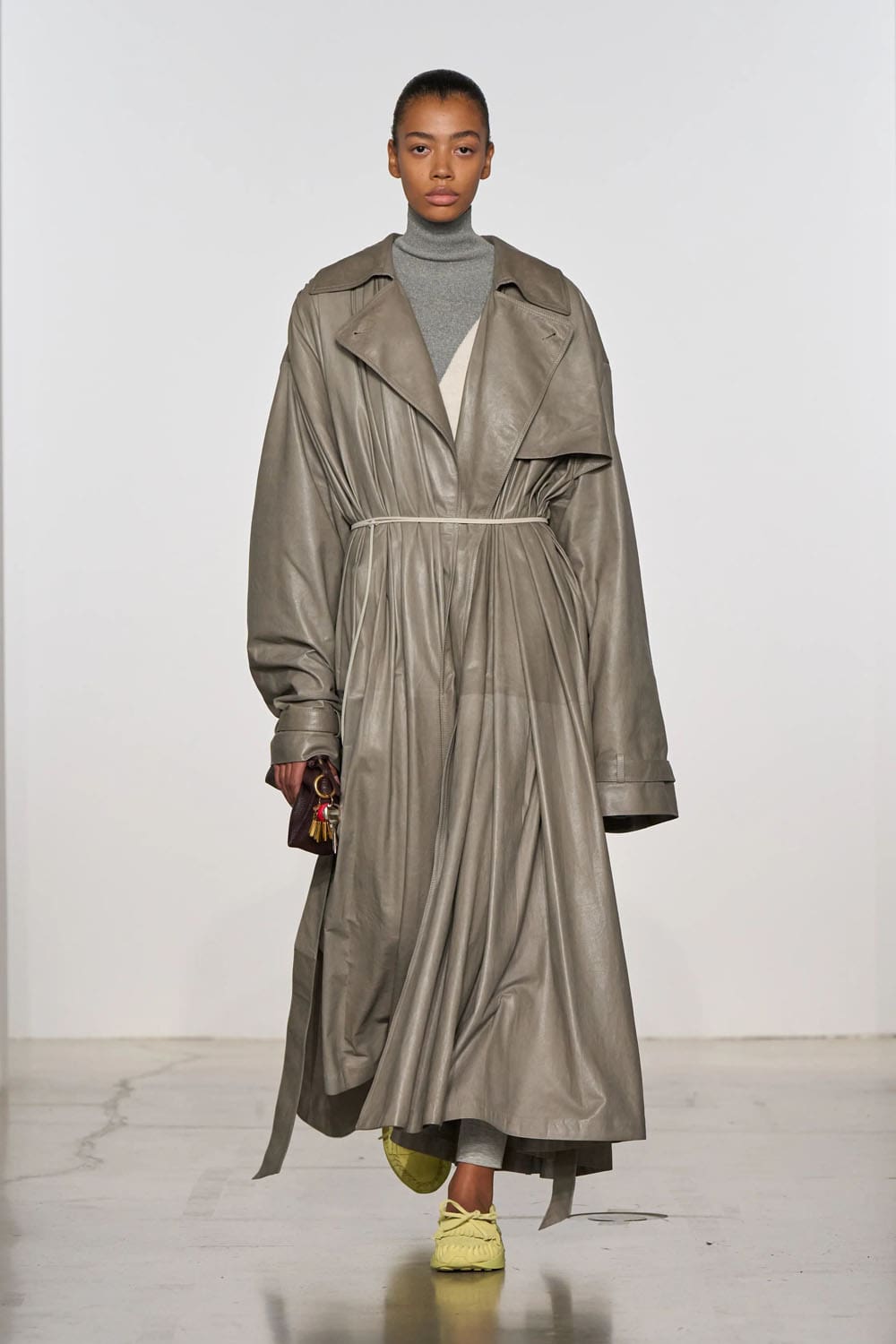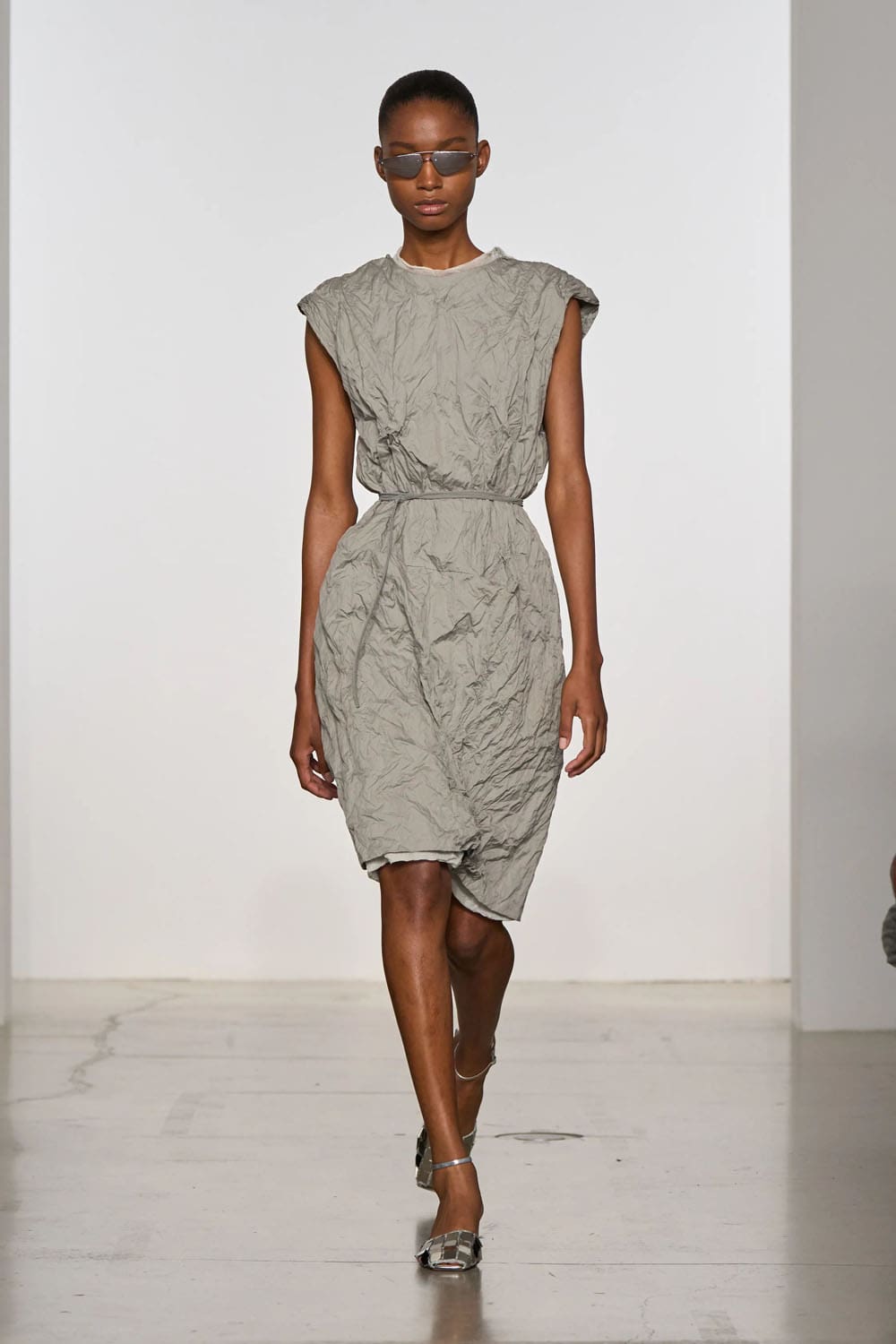 Leoni admits she’s navigating two paths: her own fresh perspective and a reverent study of Calvin Klein’s iconography. Admirable, but here’s the rub — overintellectualizing a brand built on minimalism is a risky sport. For every sharp oversized blazer and razor-thin leather trench (very downtown, very wearable), there was a pom-pom or papery crinkle threatening to tip the balance from sleek to silly.