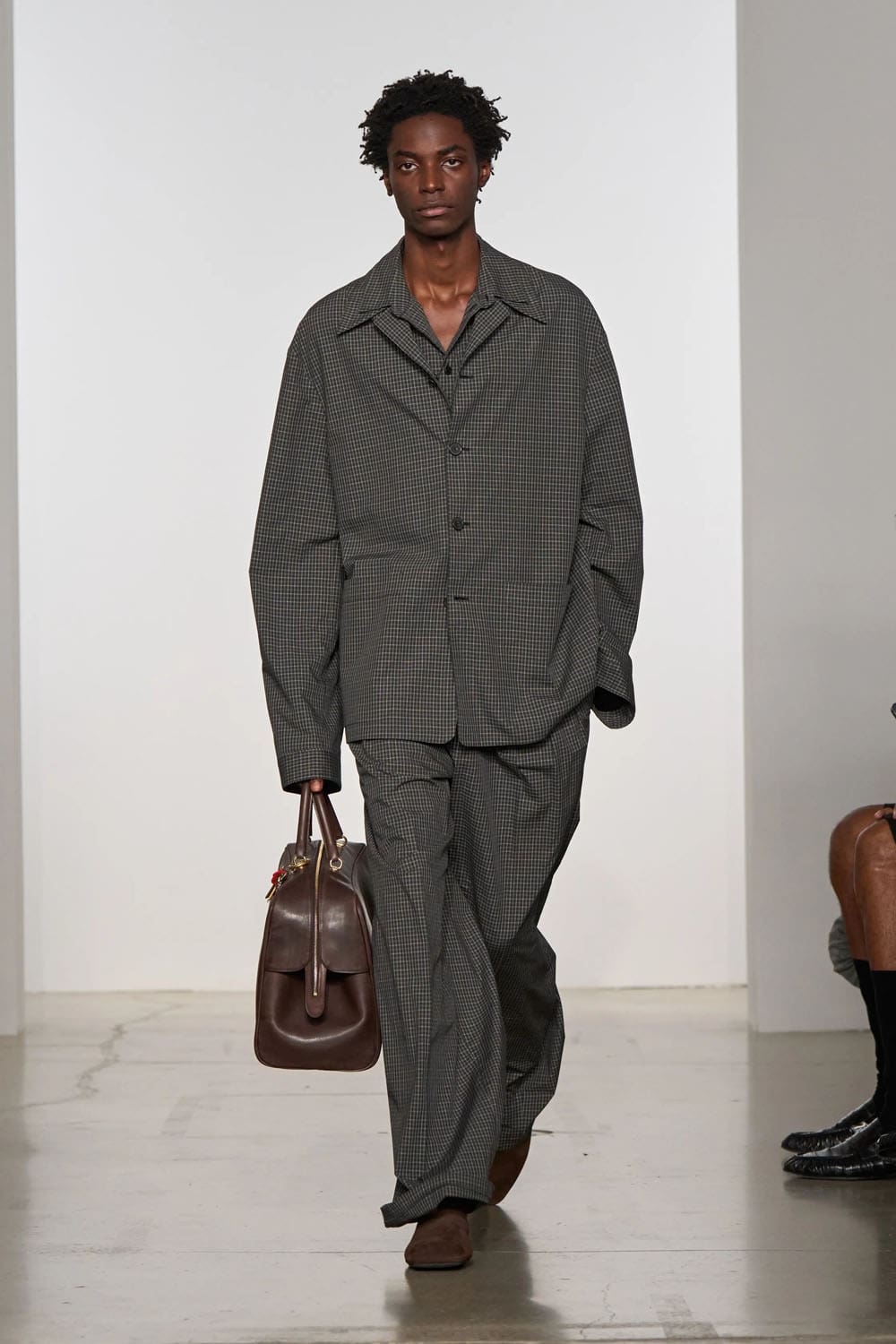 The models clutched keys like secret talismans, adding a playful, faintly surreal element to otherwise austere silhouettes. And yes, the bags were intentionally pre-scuffed — because authenticity, apparently, must now be curated in a design lab.