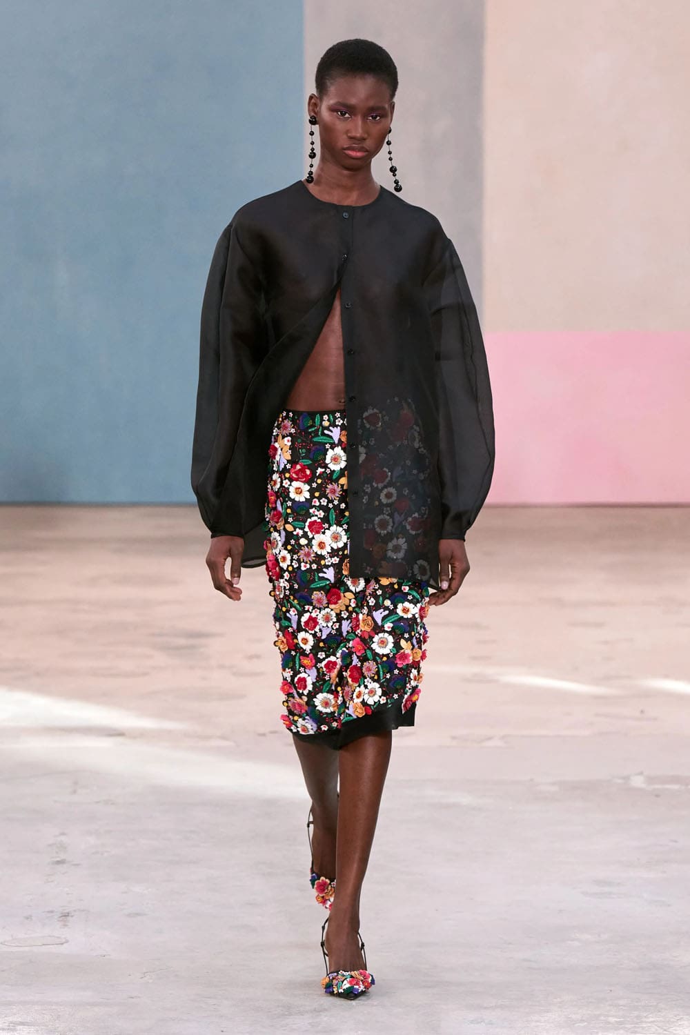 Calla lilies, subtle and suggestive, adorned jackets and buttons. A nod to Carolina Herrera herself, perhaps, whose youthful elegance was echoed in nipped waists and structured shoulders. But these weren’t museum pieces. Gordon paired them with asymmetric skirts, and just as easily imagined them with jeans and heels. The message: use the archive, but don’t inherit it.