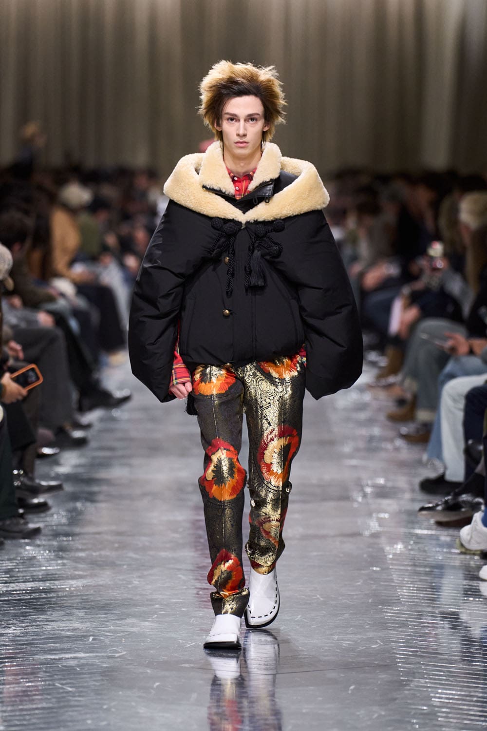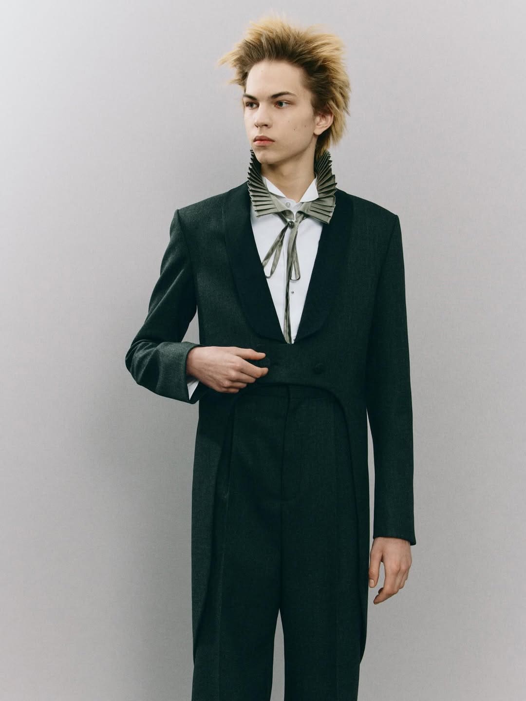 This collection, we’re told, is a “play on history and affluence.” In reality, it’s the fever dream of a British schoolboy who once saw a poster of David Bowie, misunderstood it entirely, and built his personality around that single misinterpretation. Bowie? Please. This was less Ziggy Stardust, more Zara Stardust, sprayed with hair gel and desperately begging for meaning.