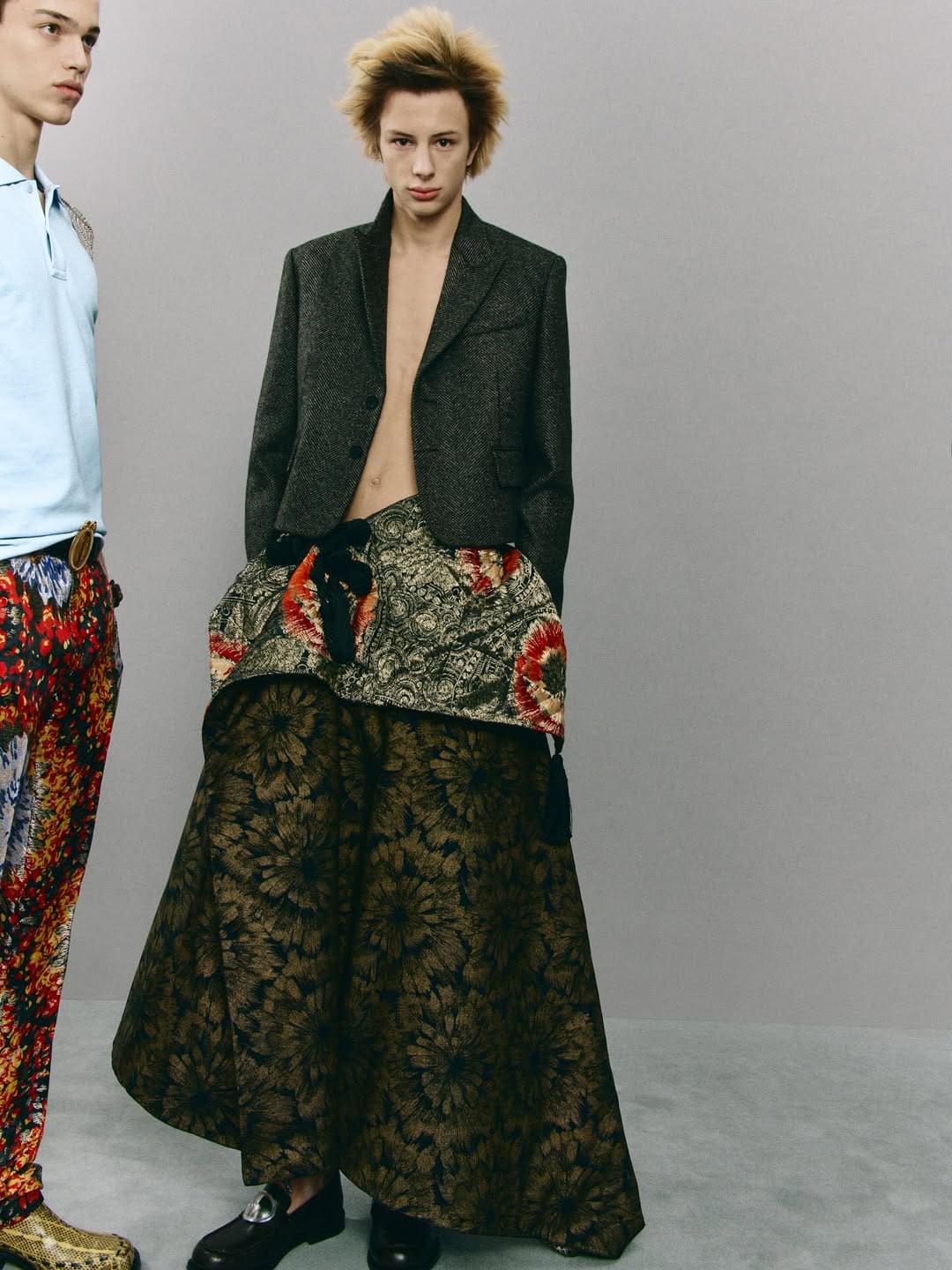 The tailoring is apparently “precise.” Precise in the way a toddler precisely draws on the wall with lipstick. The masculine-feminine line is “blurred,” but not in a boundary-pushing way — more in a “we couldn’t decide, so we threw in everything and hoped for applause” kind of way.