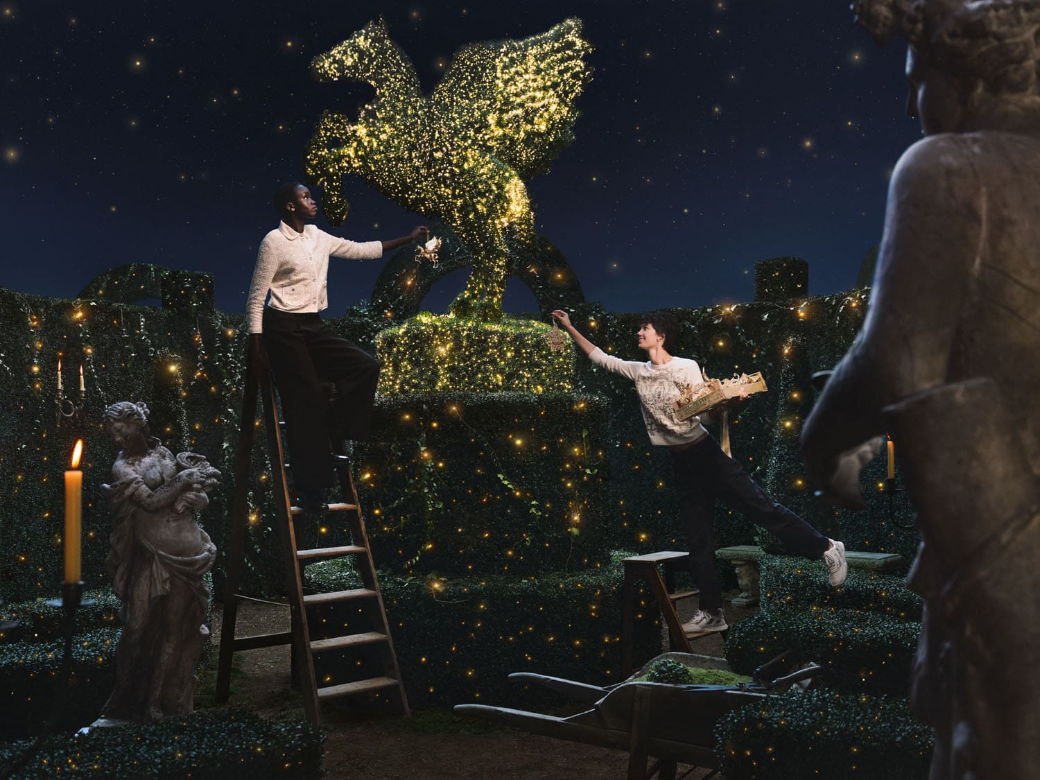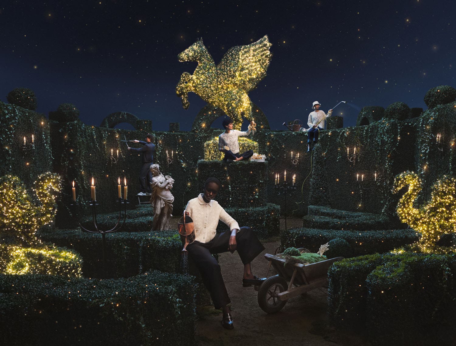 Jewelry, by Victoire de Castellane, punctuates the narrative with knowing brilliance. These are not ornaments but signs — luminous fragments placed like clues throughout the maze. Each piece carries its own spell, assertive and imaginative, confirming that Dior’s idea of luxury has always been intertwined with daring and delight.