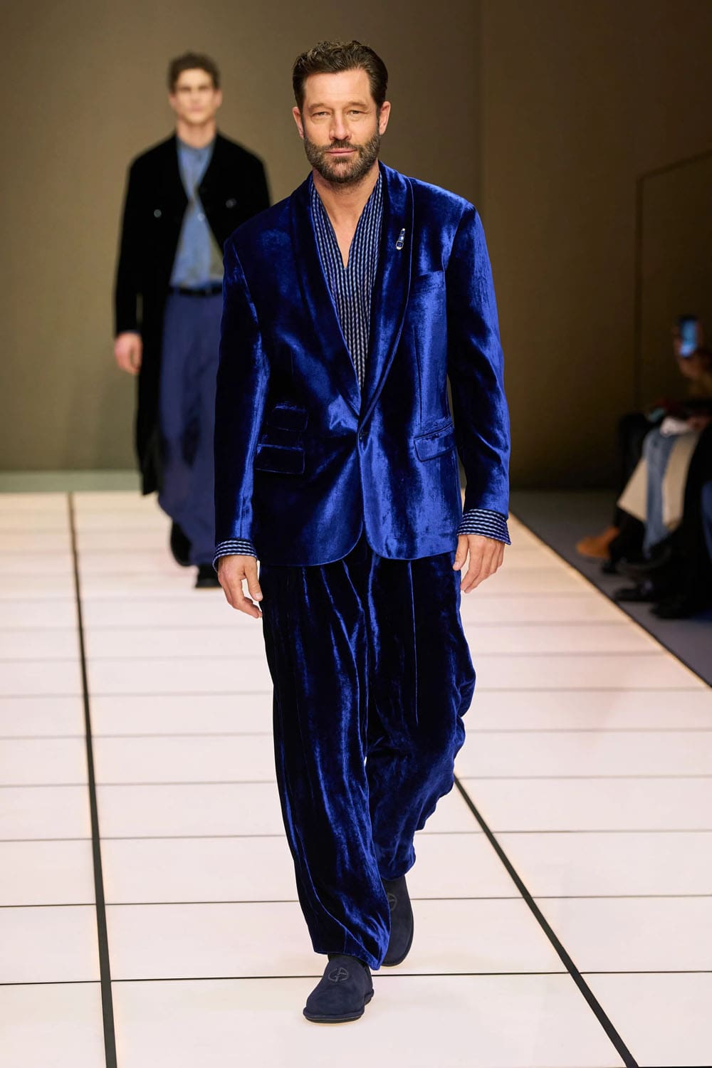 Leo Dell’Orco — who met Armani in 1975 thanks to a wandering dog in the gardens of Piazzale Libia — took the helm. His journey from that chance meeting to becoming the head of men’s collections for both Emporio and Giorgio Armani is not a footnote. It is the architecture of this very collection. It was Dell’Orco who quietly engineered the evolution of Armani menswear for nearly five decades. Now, he becomes its face.