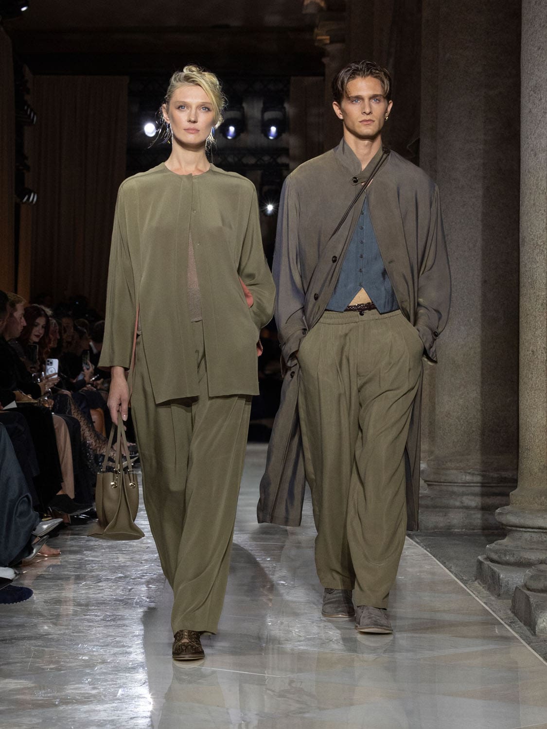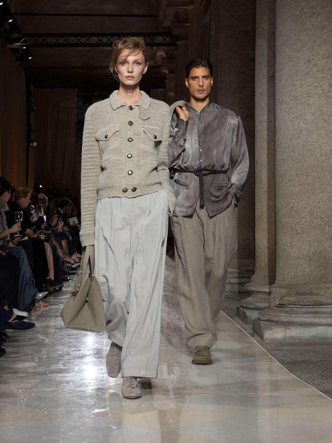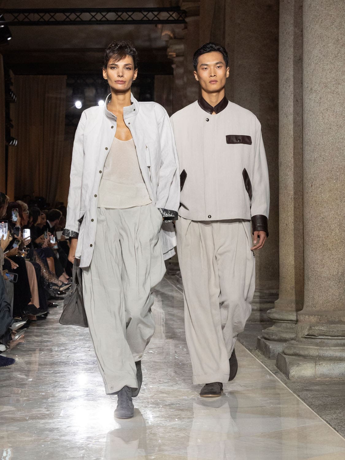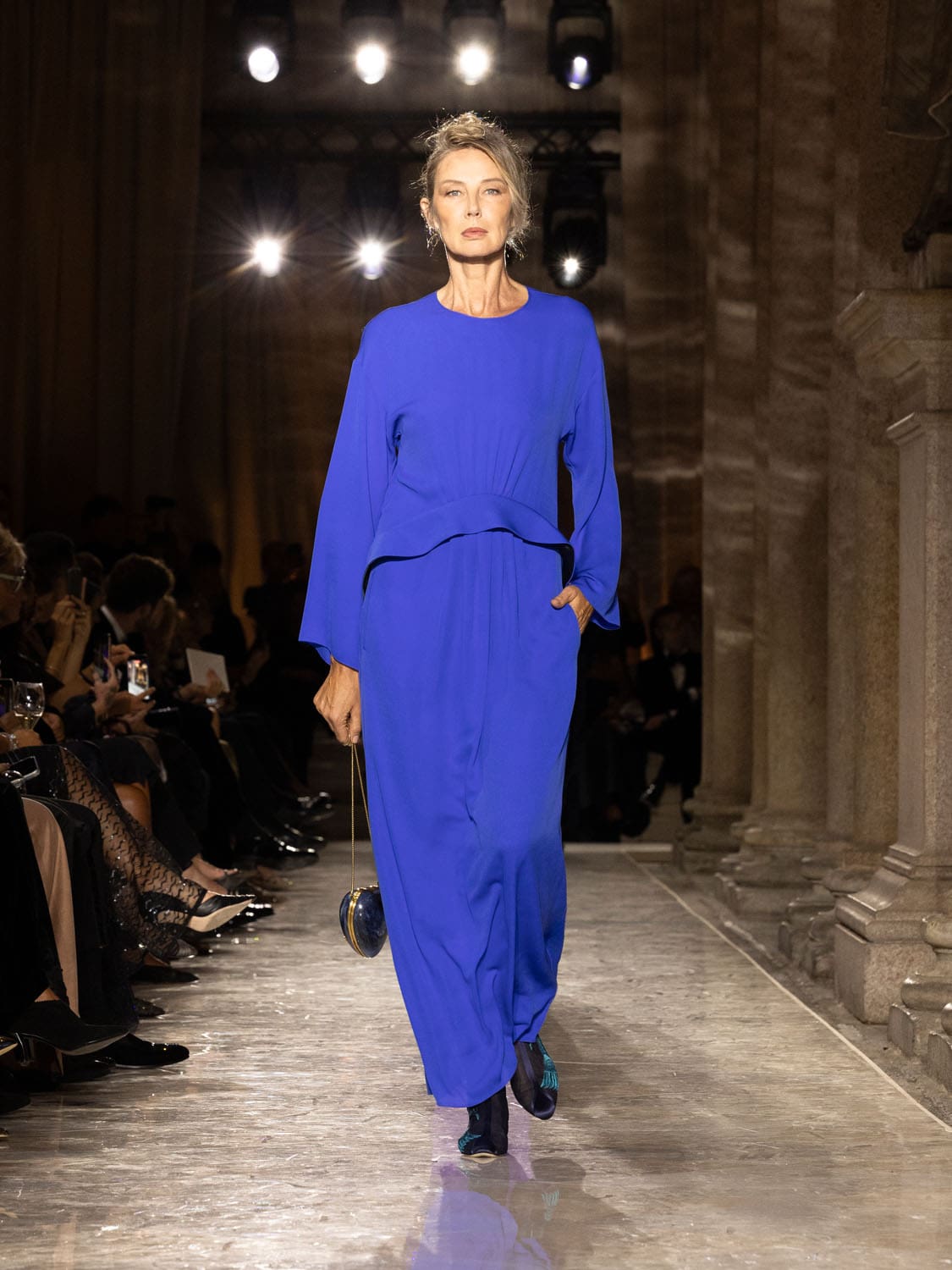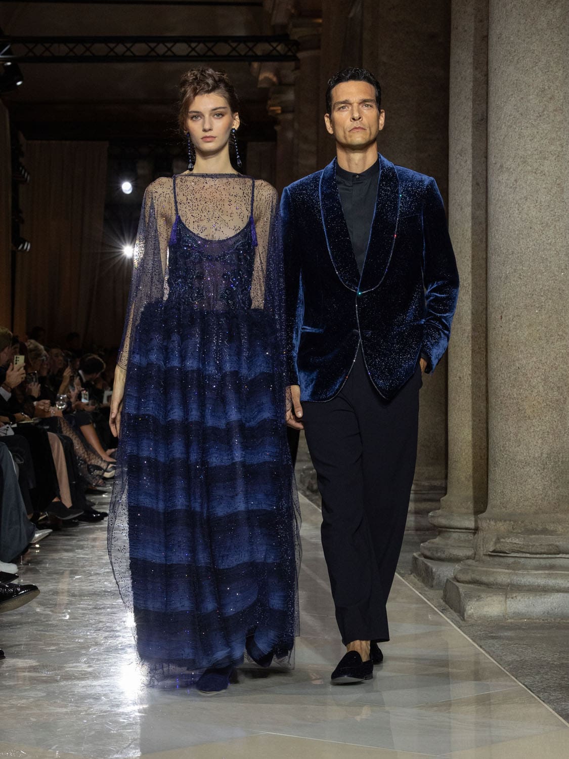 Historic Armani models returned to the runway, embodying once again the designer’s vision of woman—independent, graceful, untouchable yet deeply human. Their presence underscored the show’s gravity: not only garments walked, but history itself.
