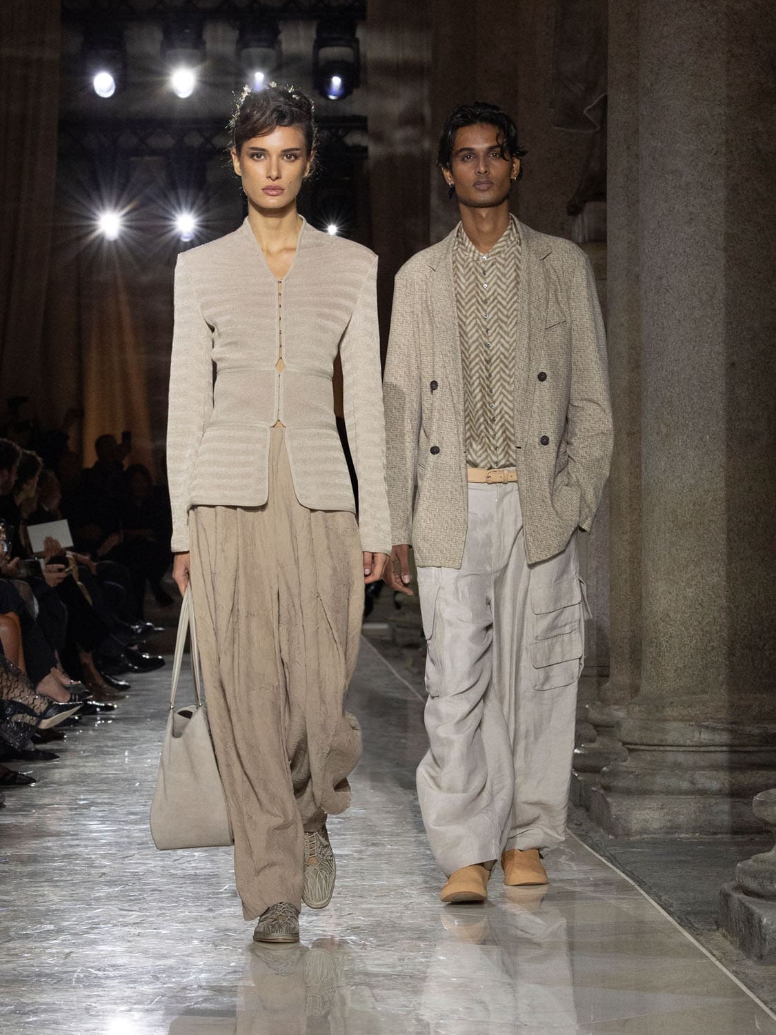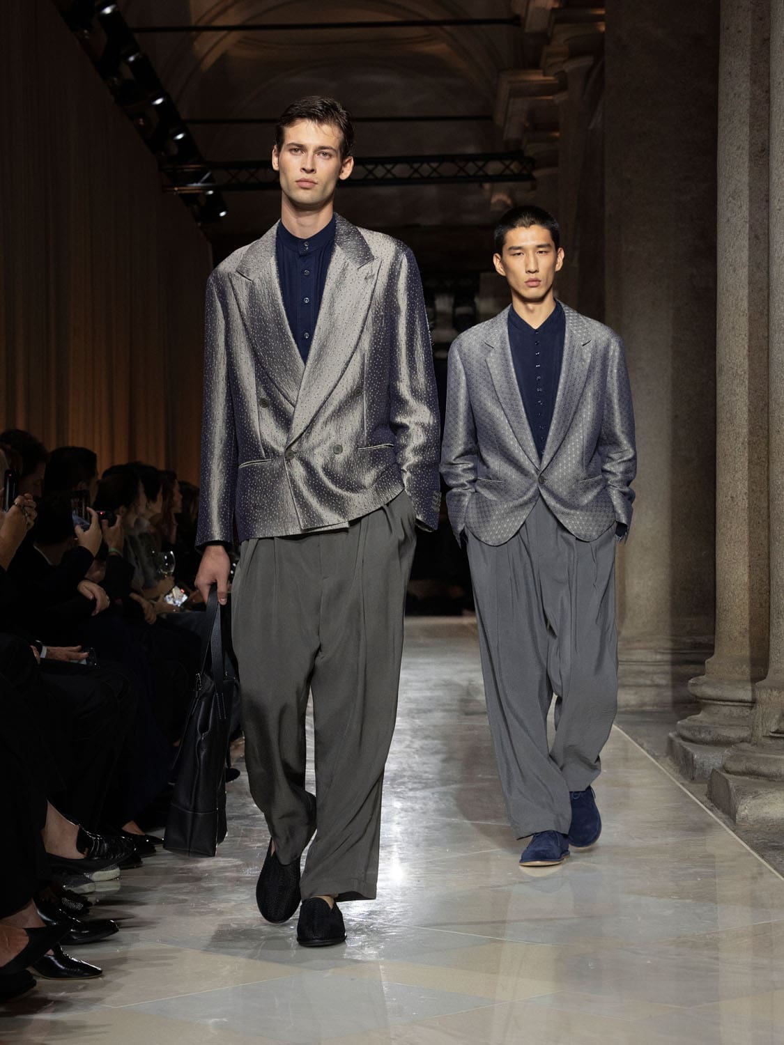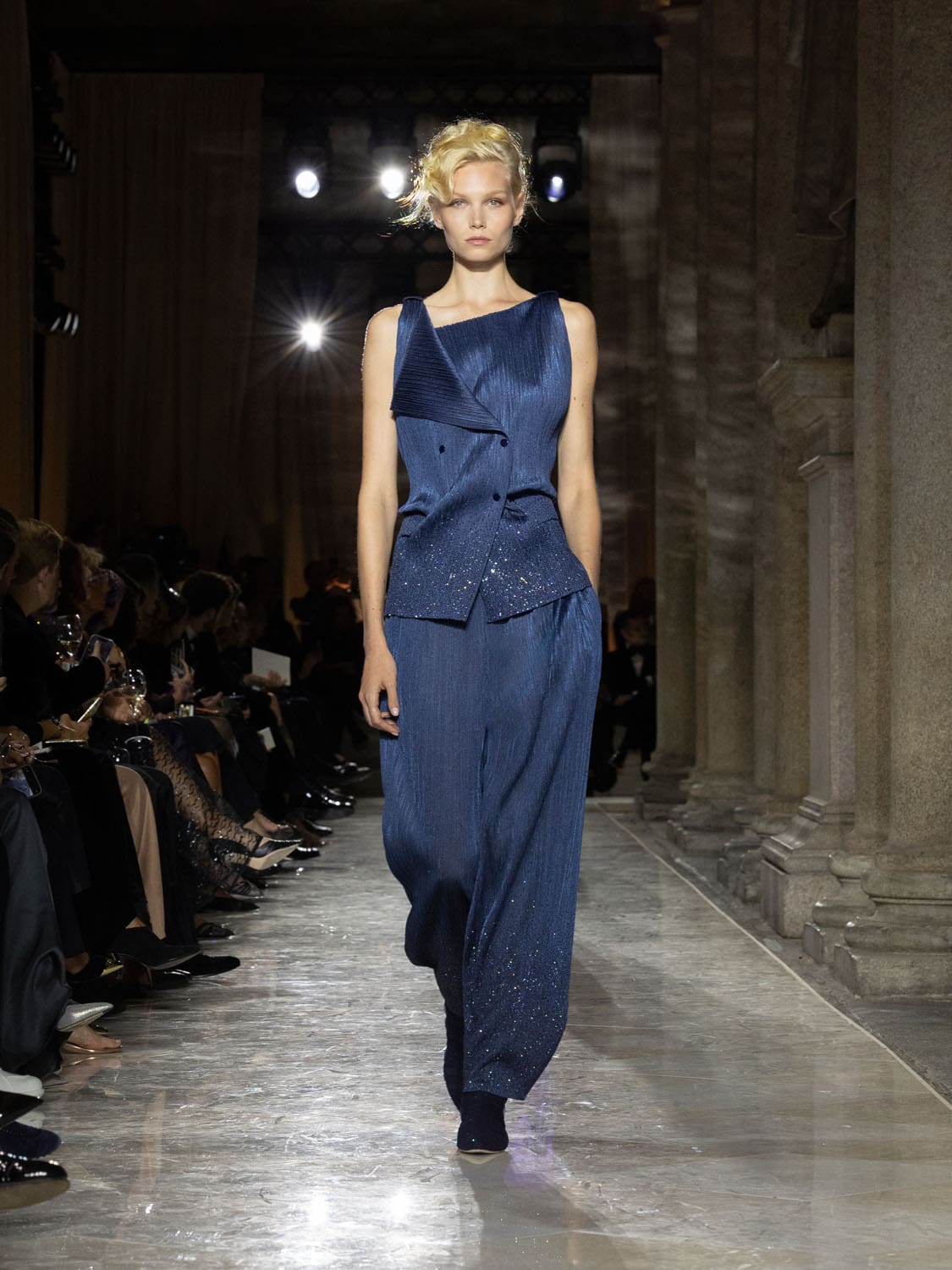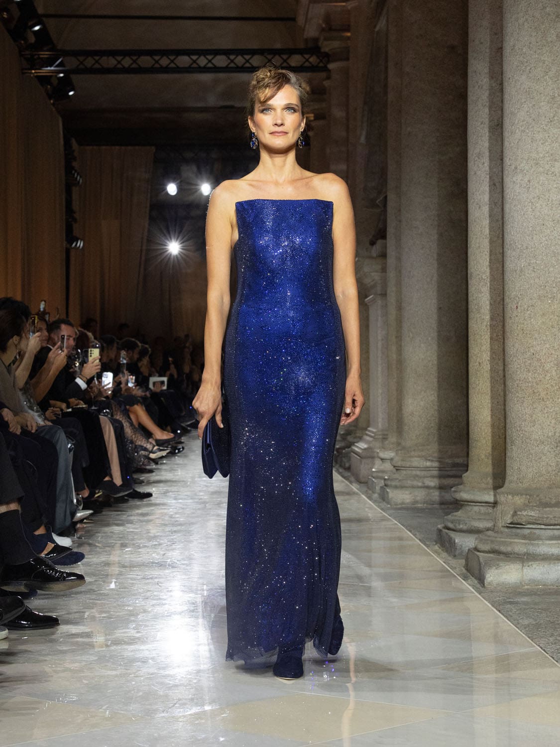 Historic Armani models returned to the runway, embodying once again the designer’s vision of woman—independent, graceful, untouchable yet deeply human. Their presence underscored the show’s gravity: not only garments walked, but history itself.