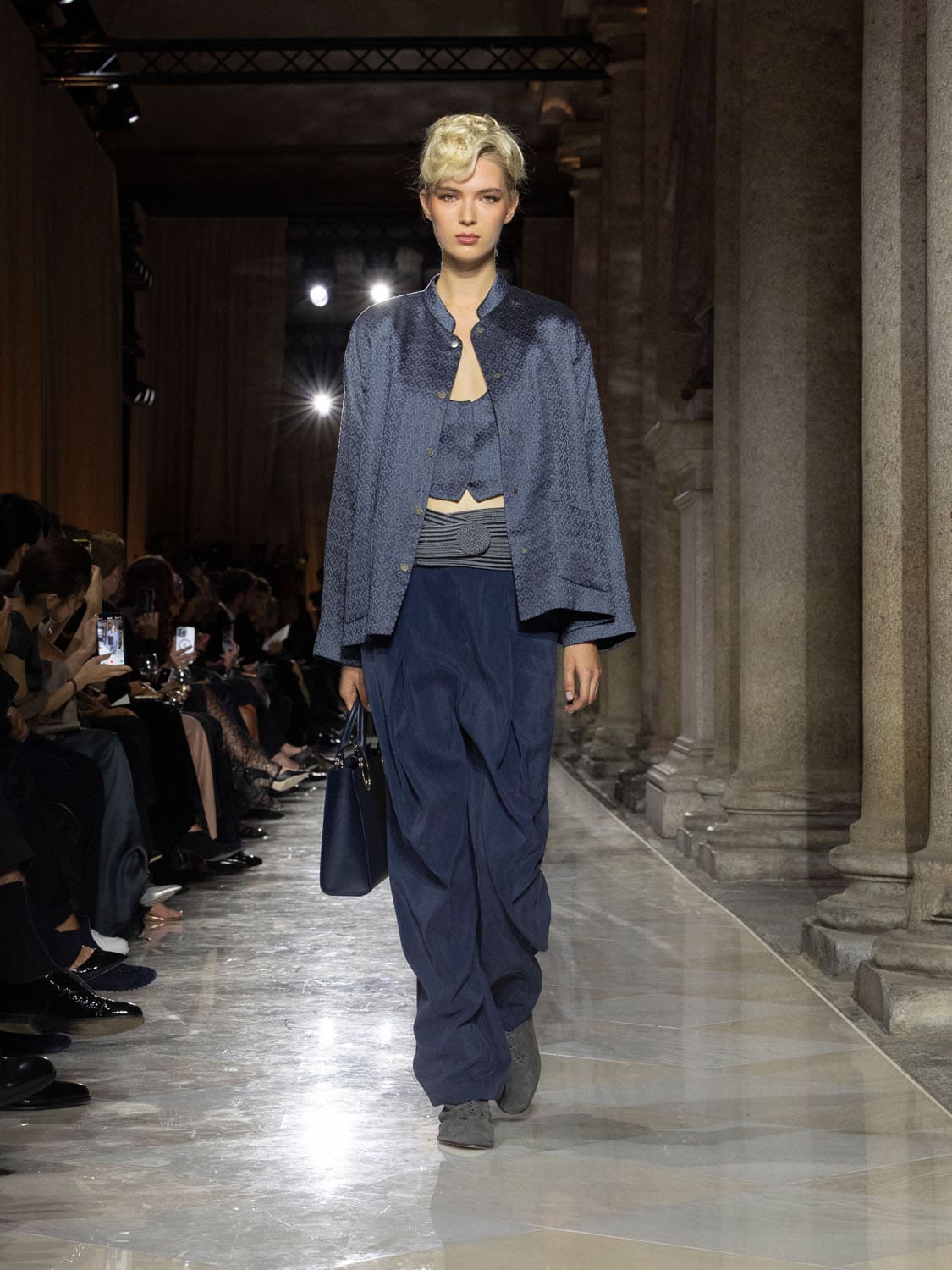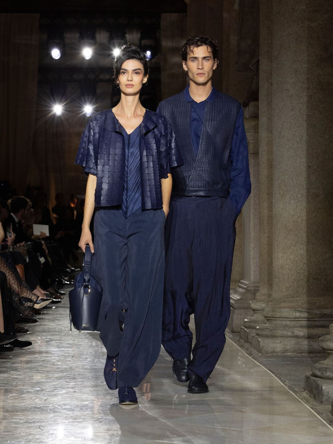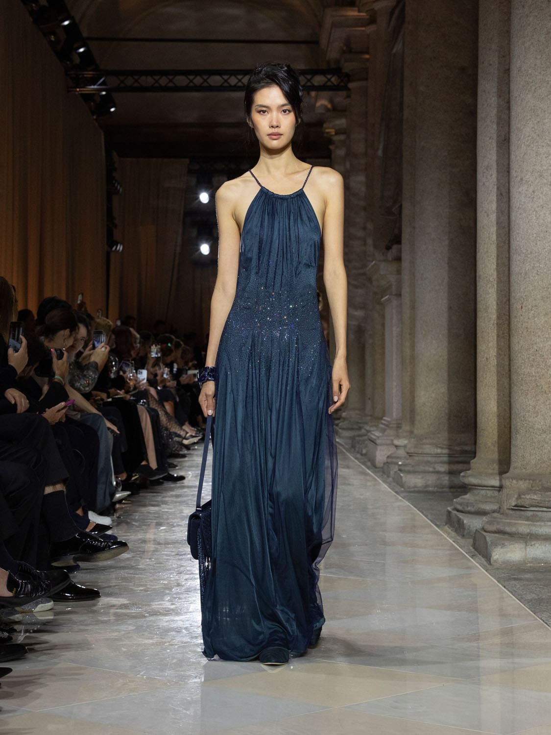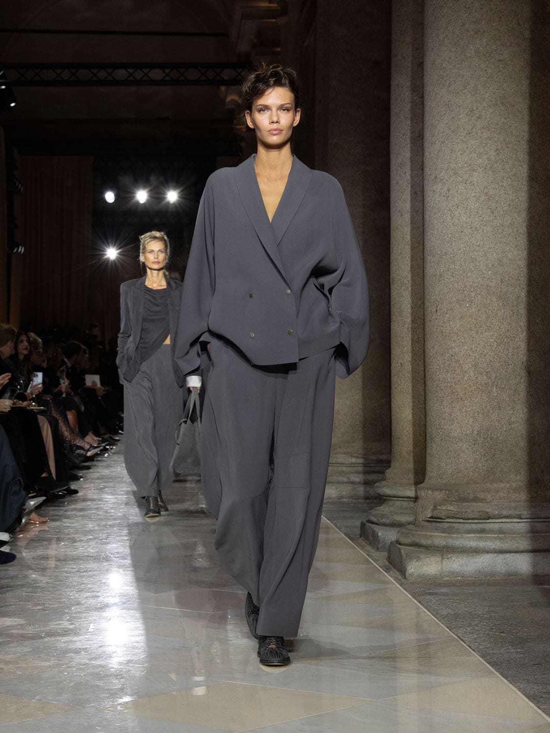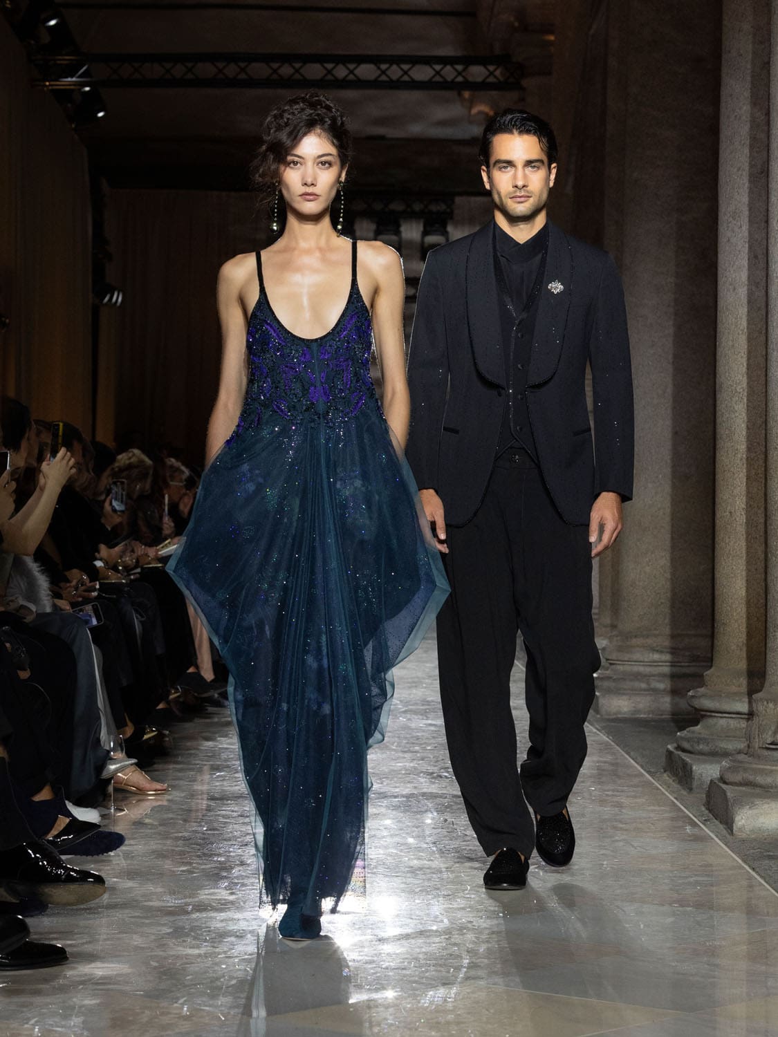 Historic Armani models returned to the runway, embodying once again the designer’s vision of woman—independent, graceful, untouchable yet deeply human. Their presence underscored the show’s gravity: not only garments walked, but history itself.