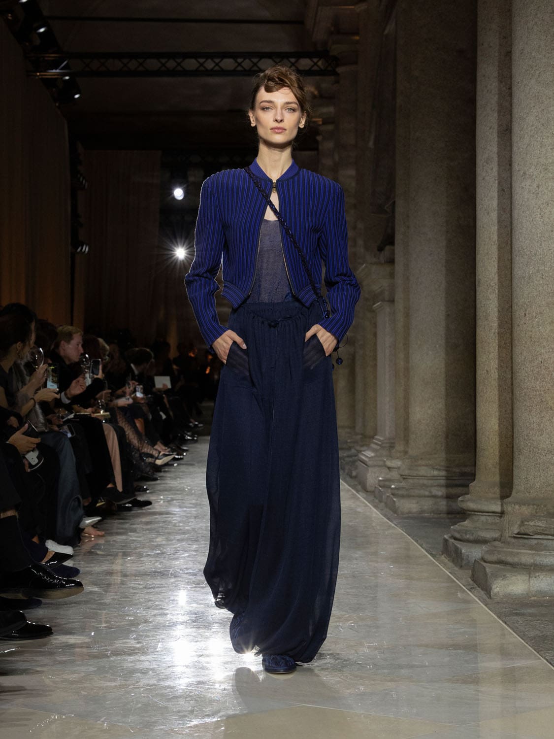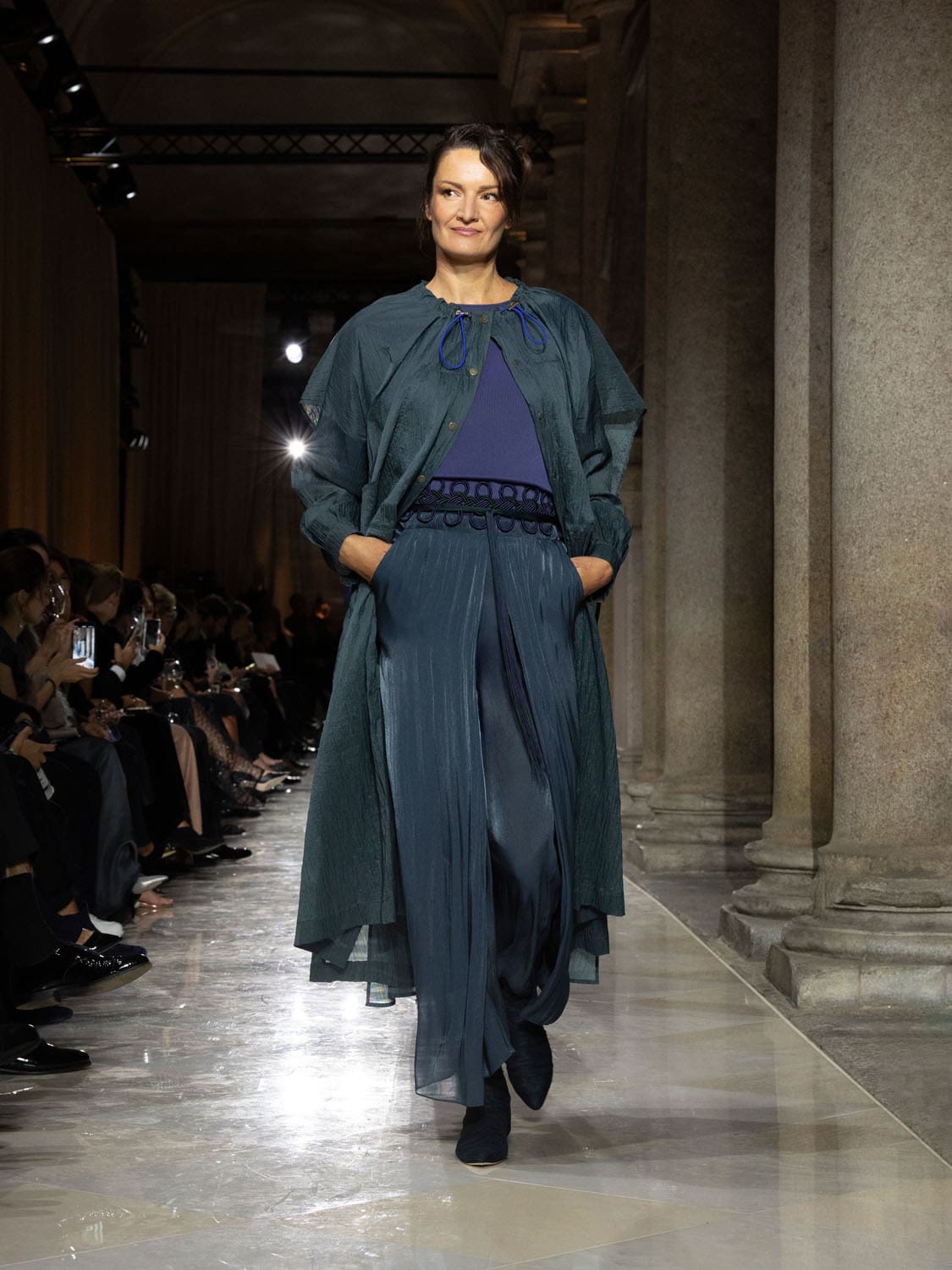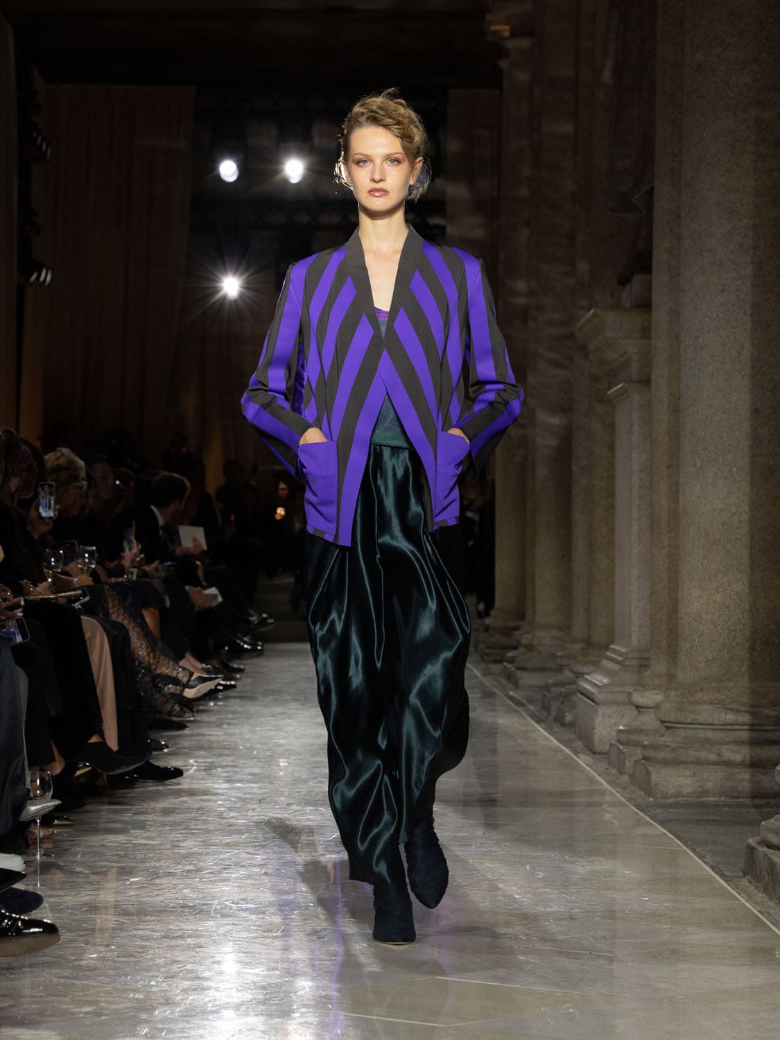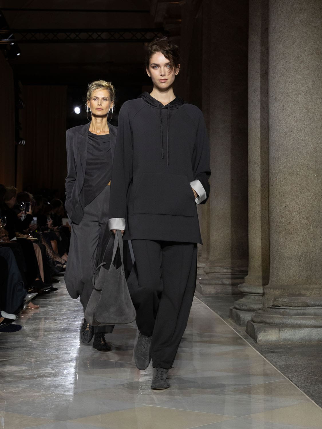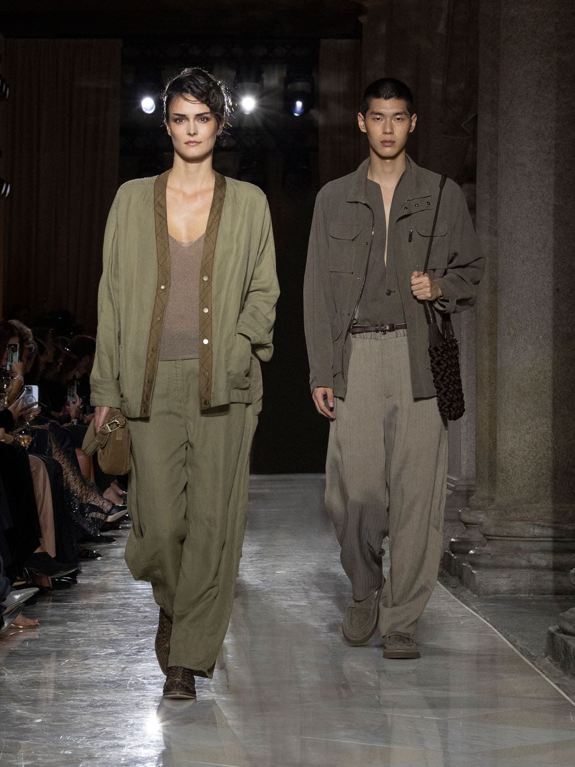 Historic Armani models returned to the runway, embodying once again the designer’s vision of woman—independent, graceful, untouchable yet deeply human. Their presence underscored the show’s gravity: not only garments walked, but history itself.
