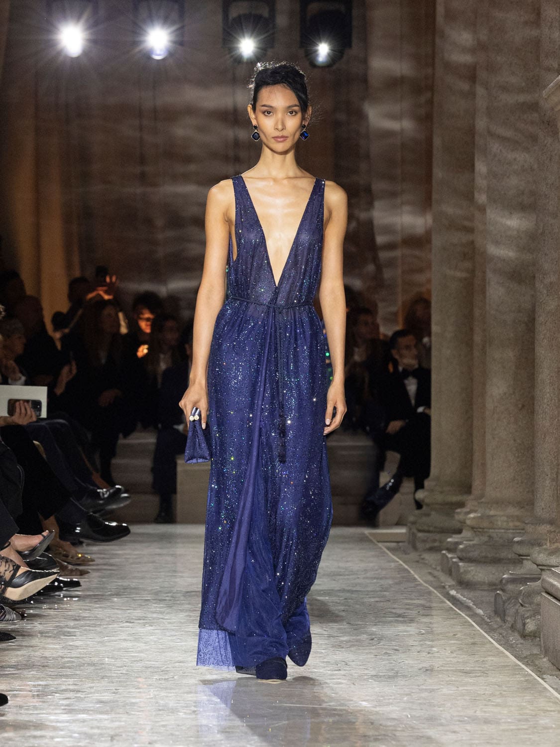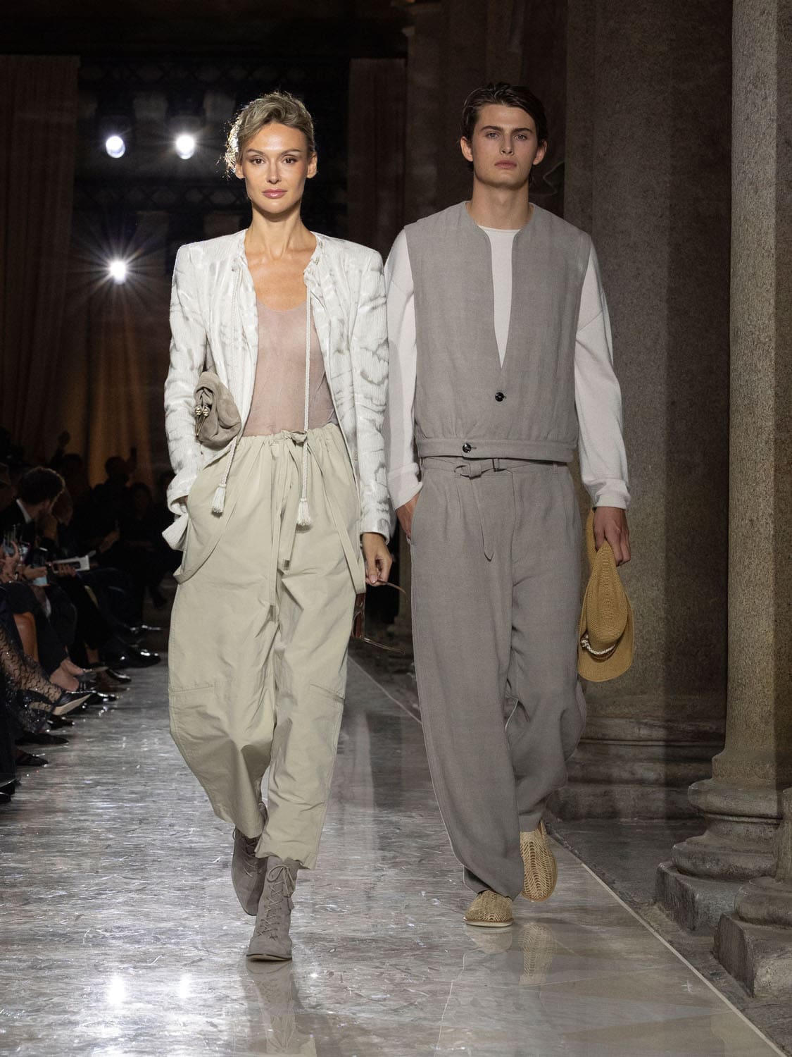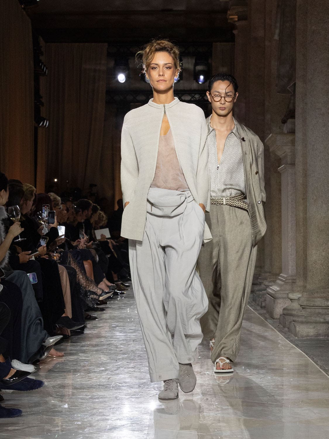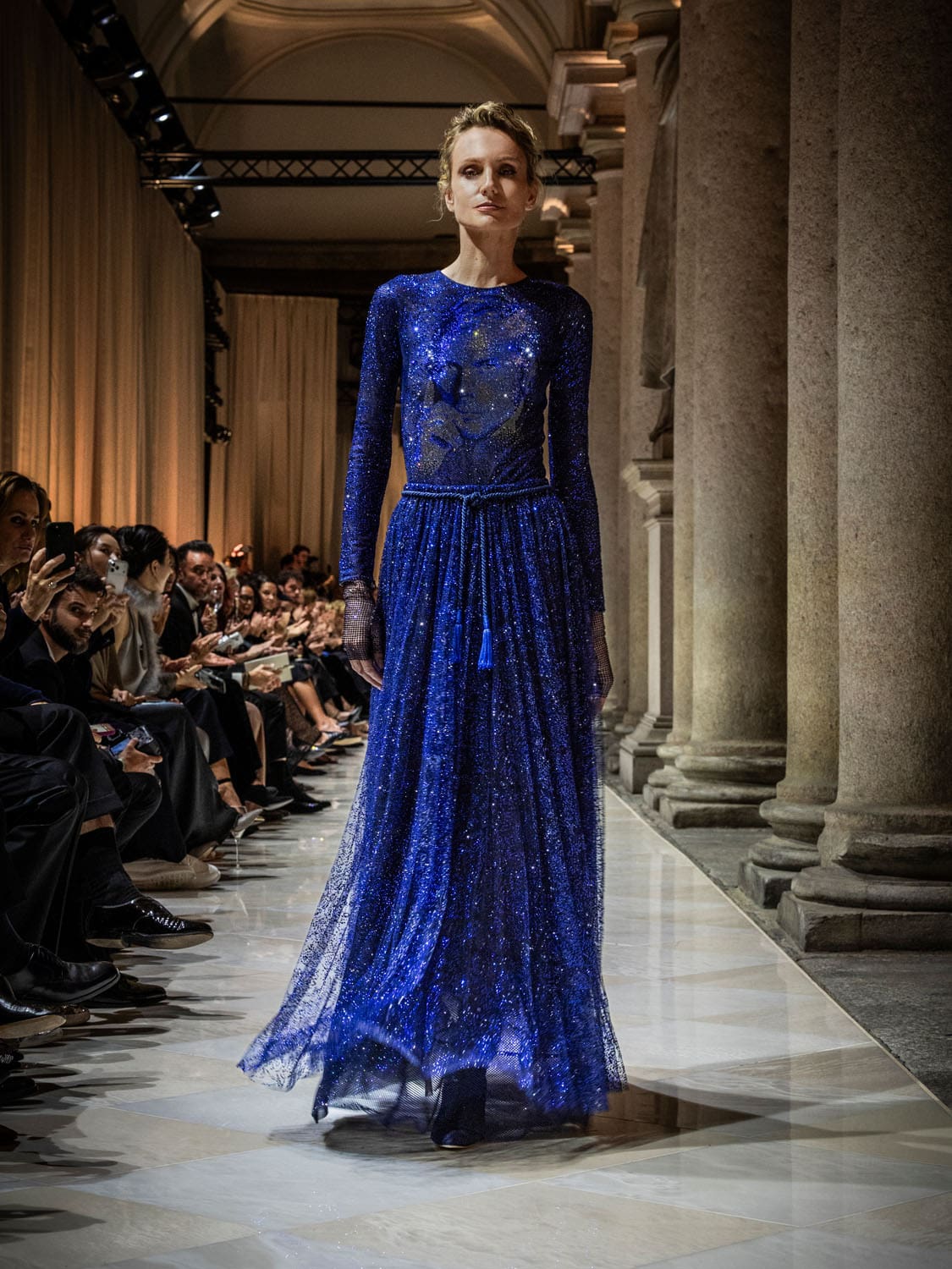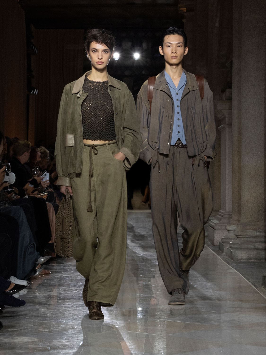 Historic Armani models returned to the runway, embodying once again the designer’s vision of woman—independent, graceful, untouchable yet deeply human. Their presence underscored the show’s gravity: not only garments walked, but history itself.