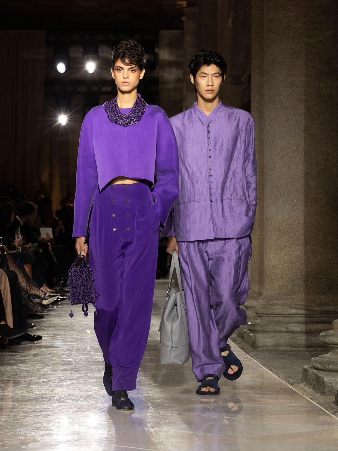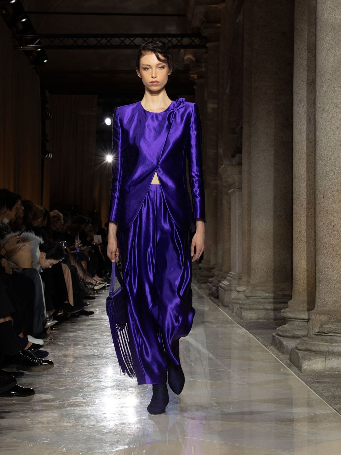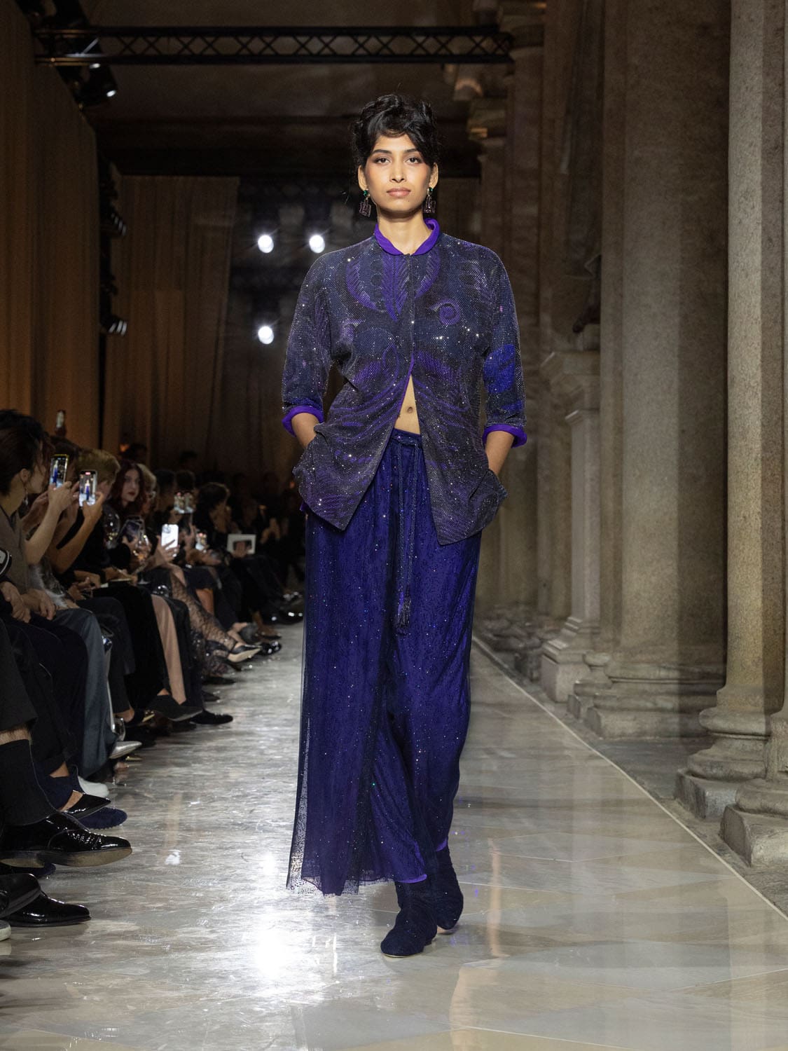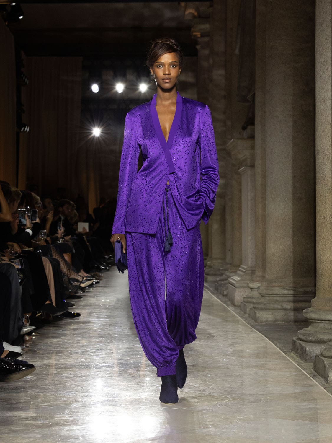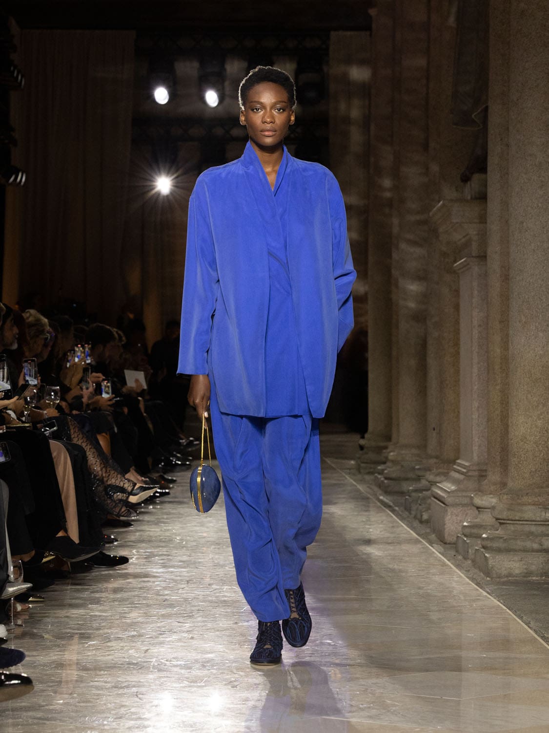 Historic Armani models returned to the runway, embodying once again the designer’s vision of woman—independent, graceful, untouchable yet deeply human. Their presence underscored the show’s gravity: not only garments walked, but history itself.