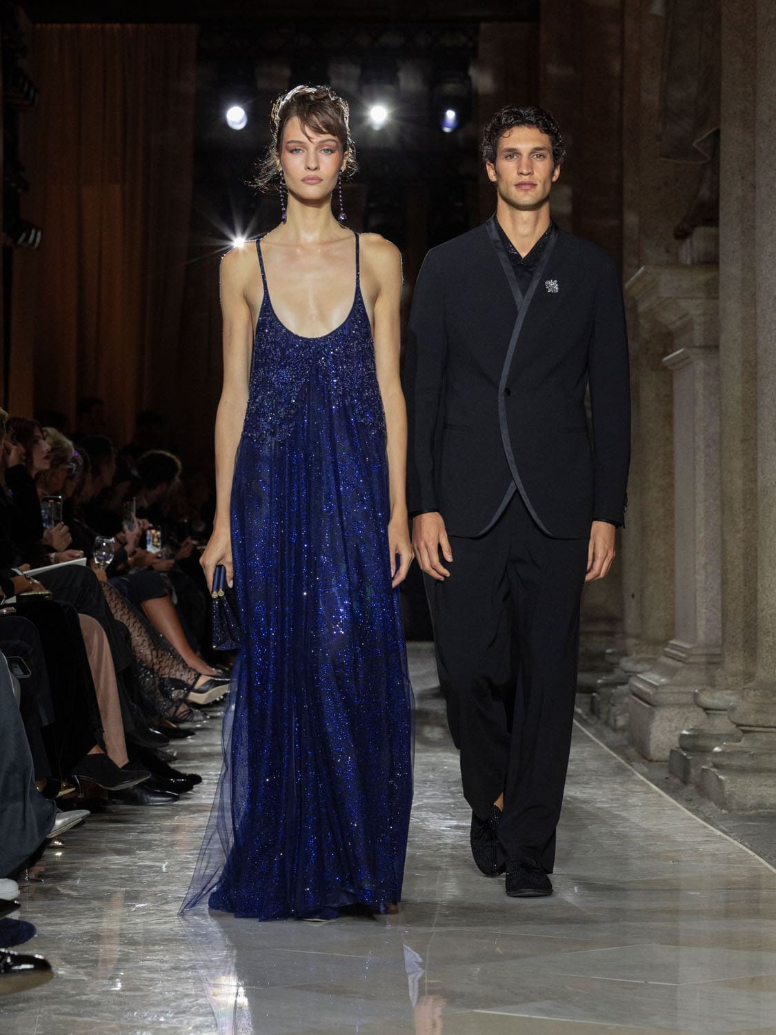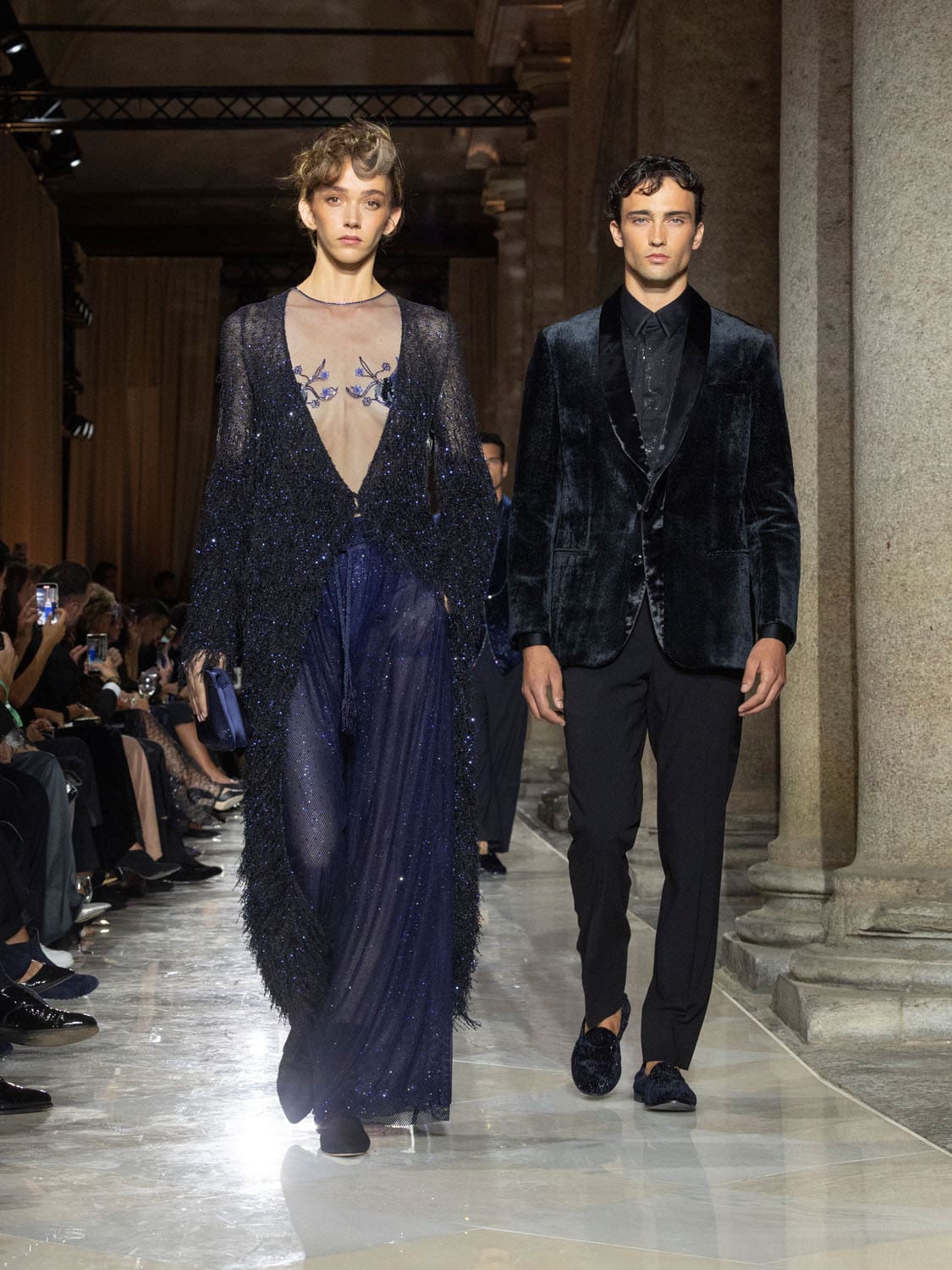 The front row reflected Armani’s global cultural resonance. Cate Blanchett, Glenn Close, Lauren Hutton, Richard Gere with Alejandra Silva, Samuel L. Jackson with LaTanya Richardson—all figures who, like Armani, stand as icons in their fields. They were not merely guests but witnesses to the last bow of a man who dressed them, shaped their presence, and gave them the armour of elegance.
