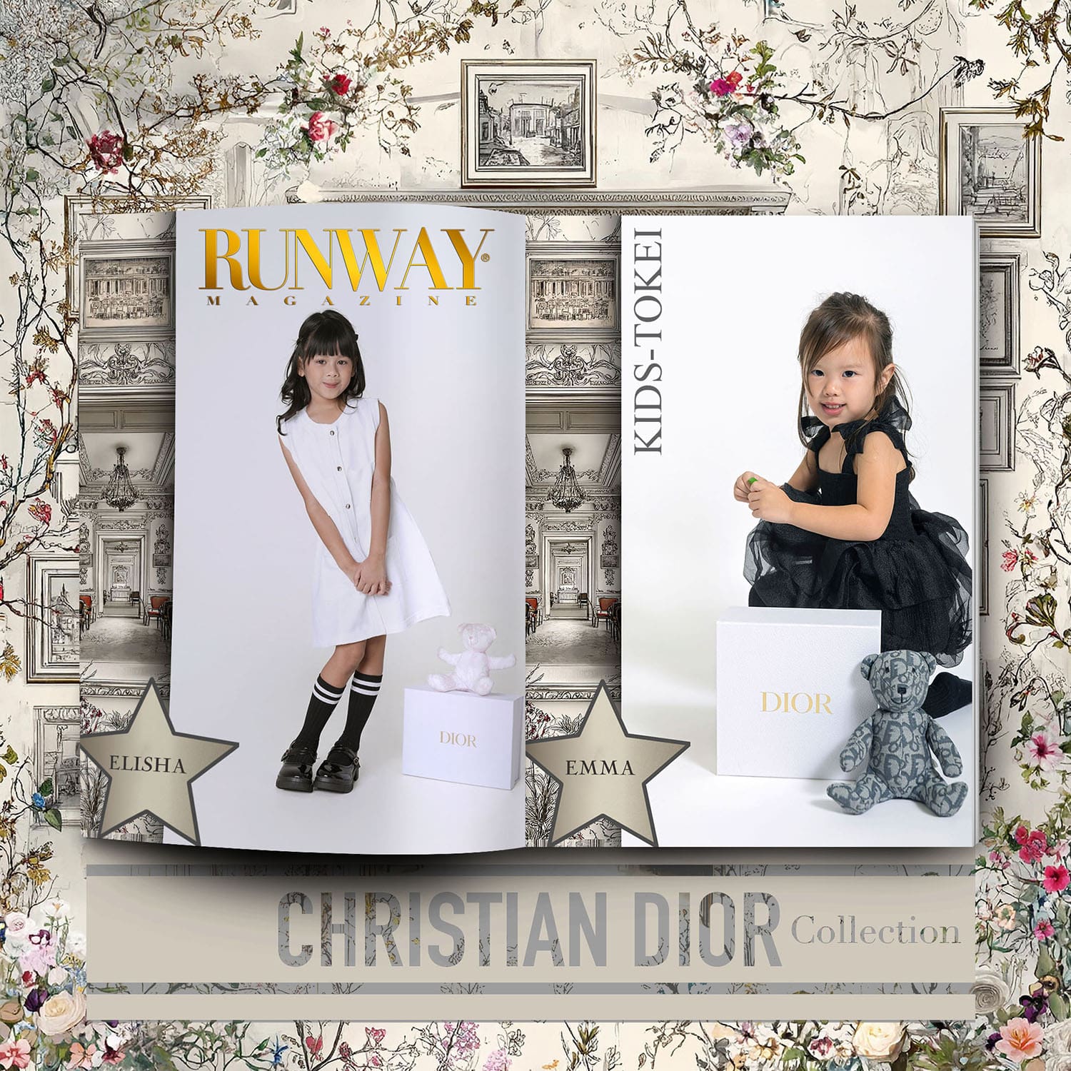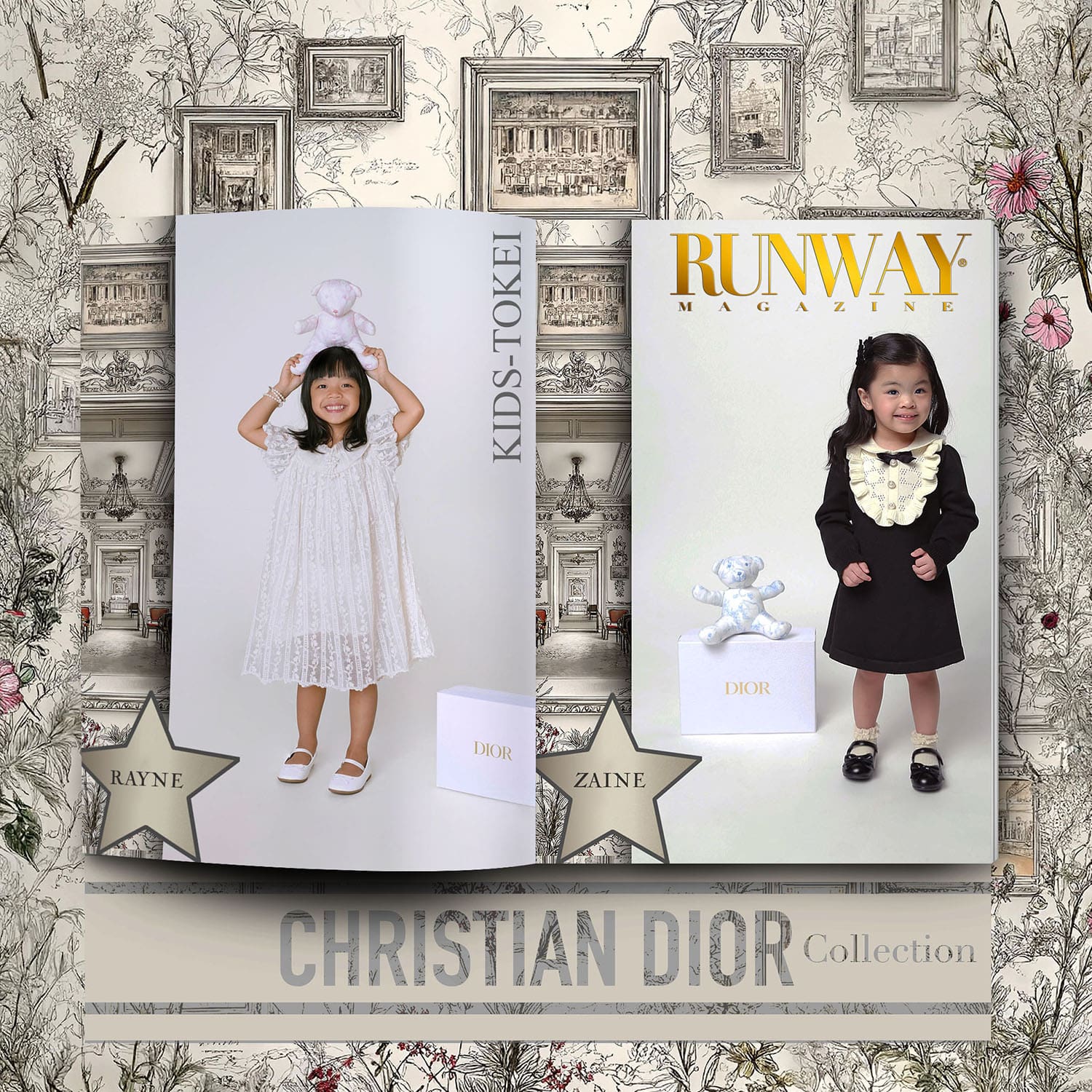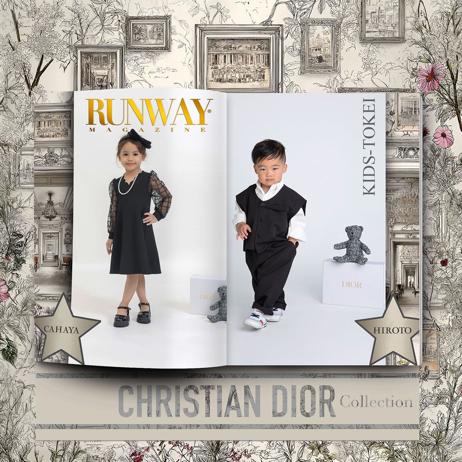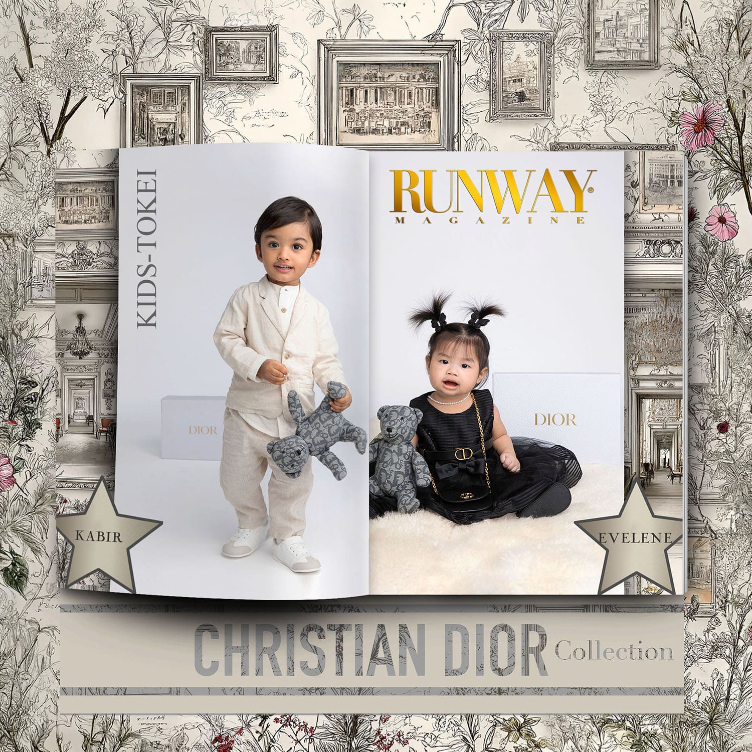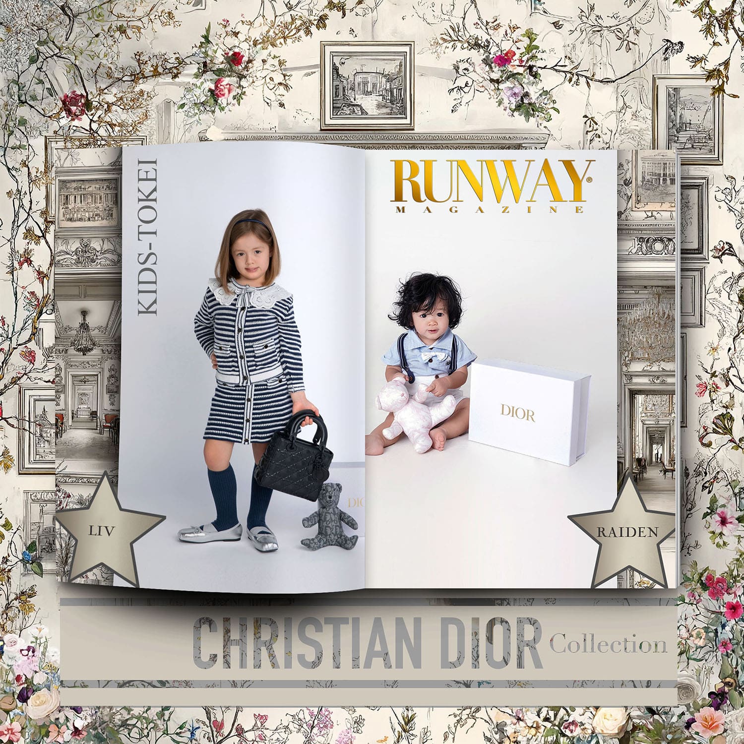 The Kids-Tokei Finalists Photo-Competition 2025 Vol.09 paid tribute to the enduring elegance of Dior, blending timeless design with the modern grace of a new generation. In partnership with RUNWAY MAGAZINE, this edition presented the Dior Collection through a curated wardrobe of clothing, handbags, accessories, and refined luxury toys—purchased exclusively to bring Dior’s universe into an intimate editorial setting.