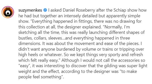 Indeed this collection felt hollow, empty. After 2 years thinking about surreal, plunging into the archives of Elsa Schiaparelli, Daniel Roseberry came out only with nothing, so he came to “check” what’s good around.