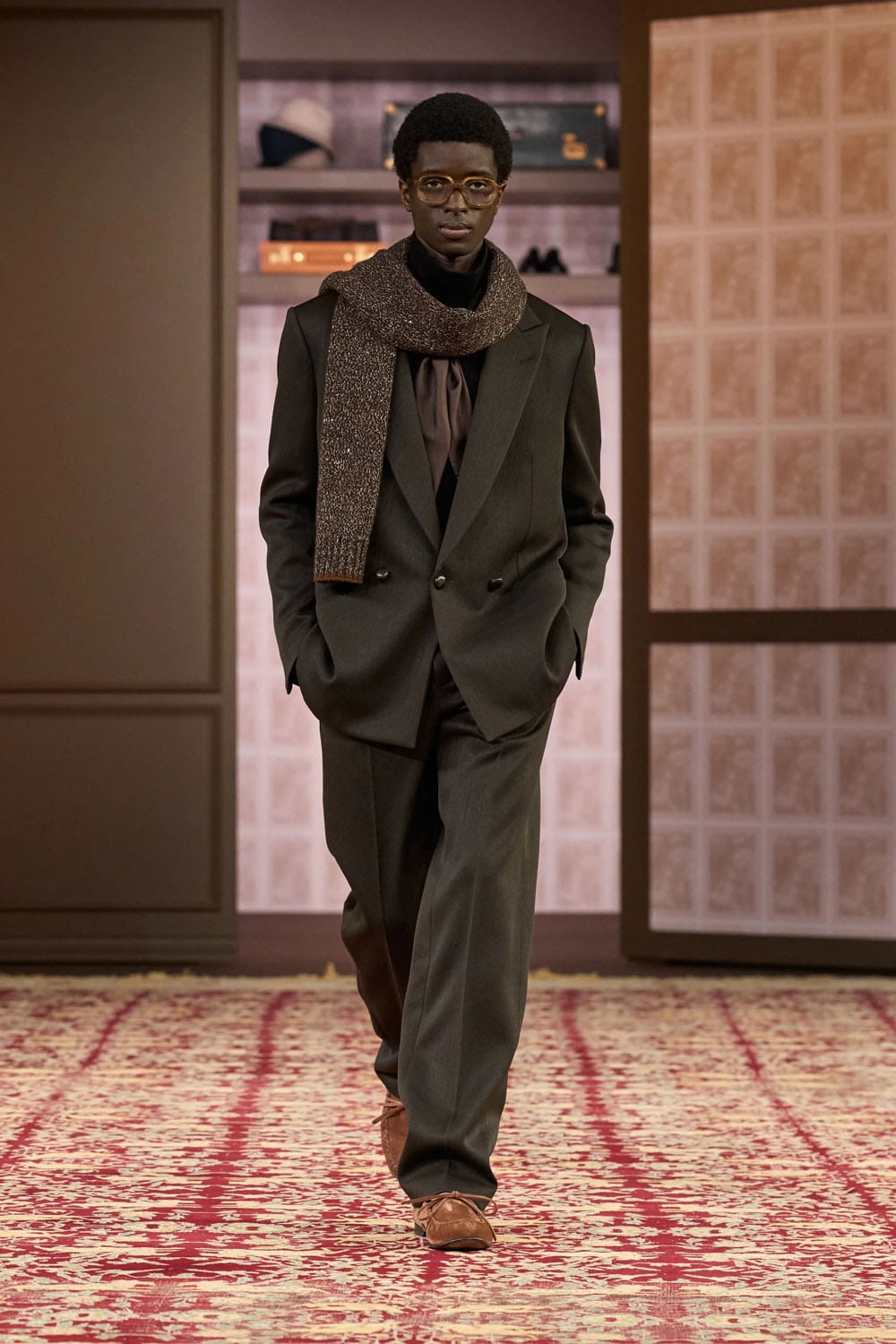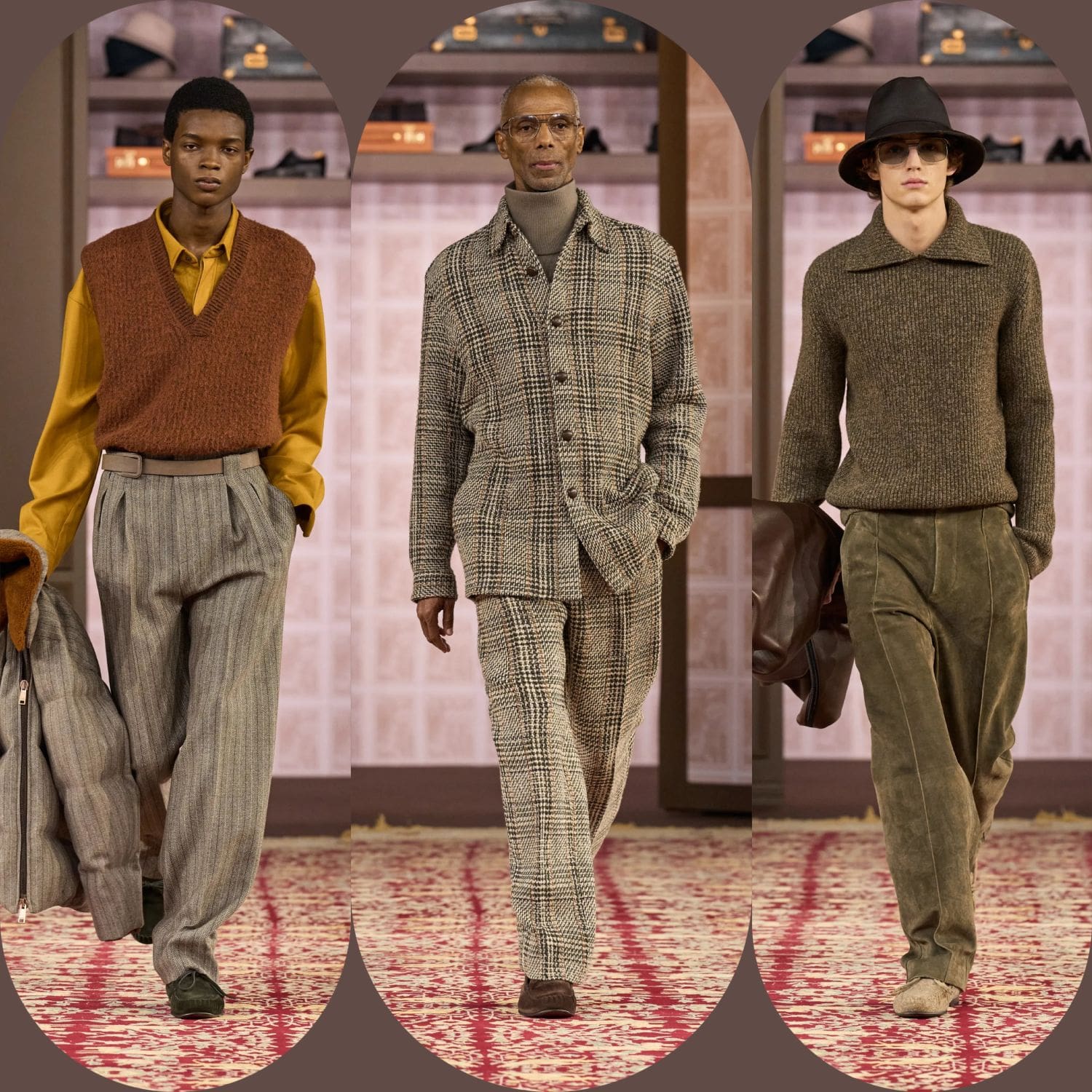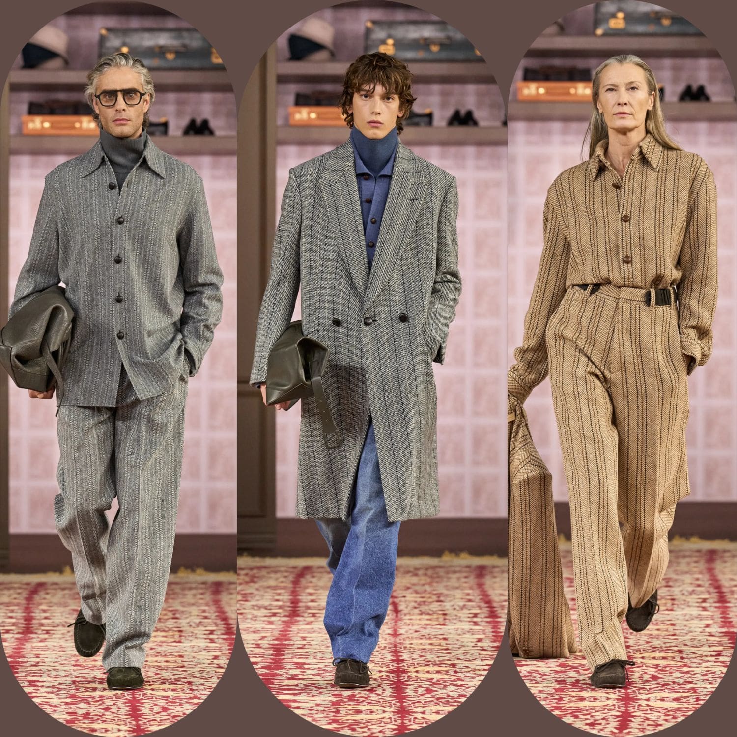 Not just a metaphor but a stage—ZEGNA’s Winter 2026 fashion show unfolded inside an enormous oval-shaped closet, echoing both intimacy and permanence. The theme, A Family Closet, was a poetic entry point to explore heritage not as an archive, but as a living entity. The show did not begin with a spectacle, but with a gesture: a door opened, and memory walked in.