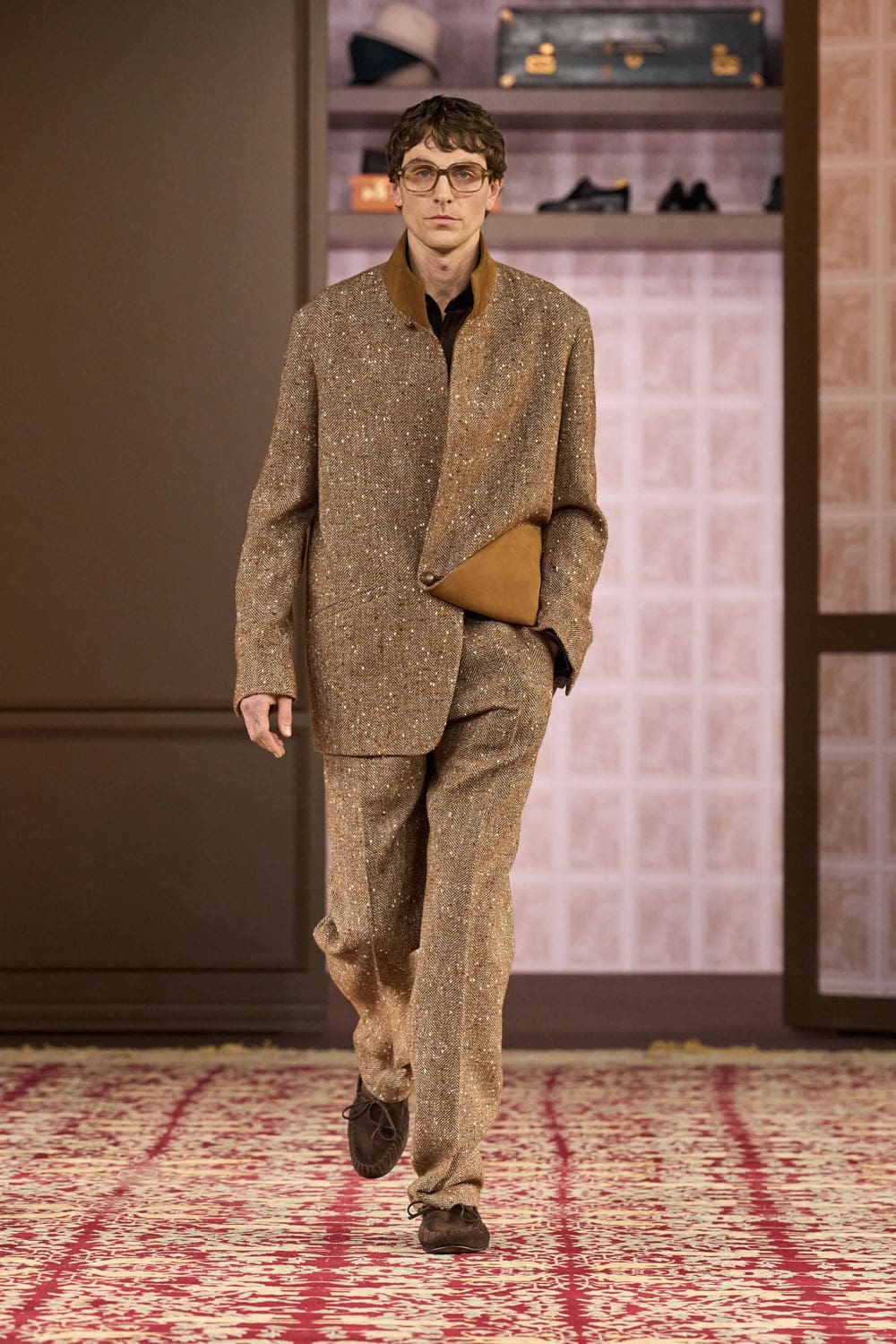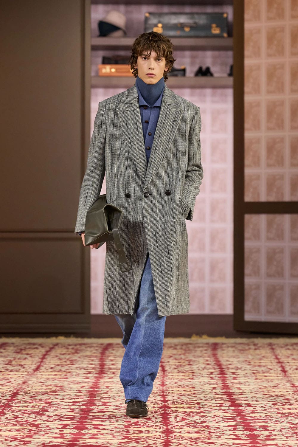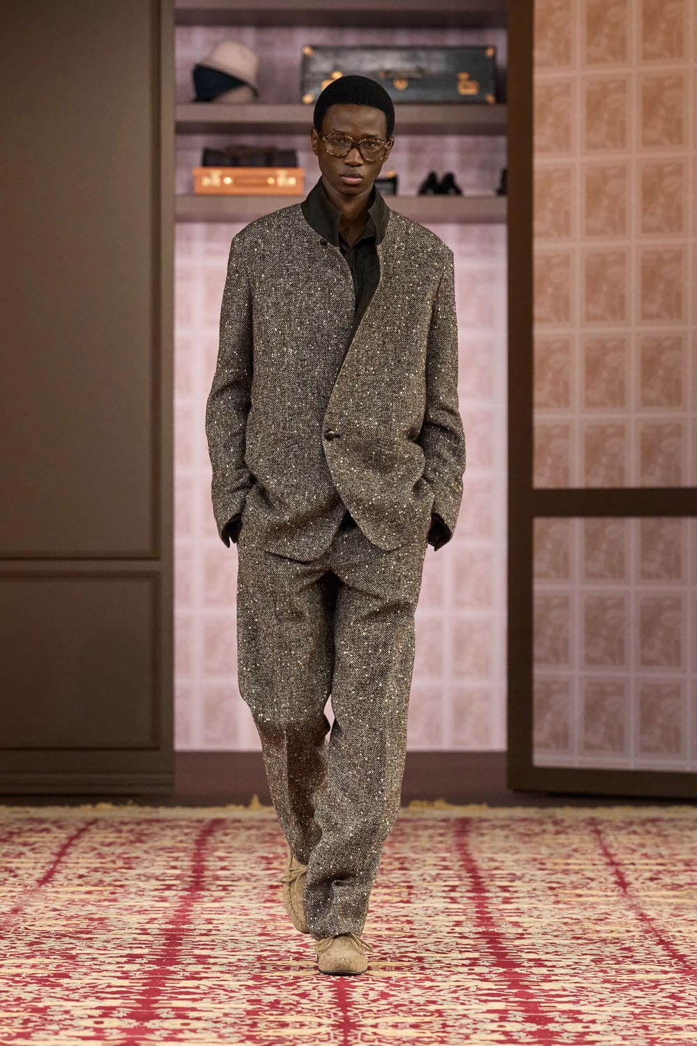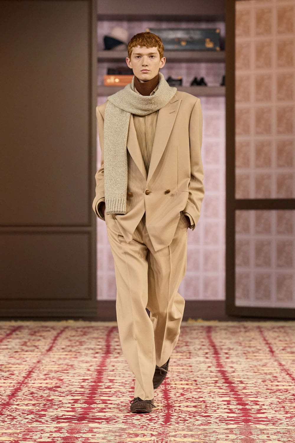 Sartori’s technical mastery never overshadowed his emotional intent. Fabric innovations—cashmere shearling, printed herringbone—were subtle triumphs. But the soul of the collection lay in its depth of feeling. Each look suggested a character, a moment, a relationship with memory. It was a collection for collectors—not because it was rare, but because it was personal.